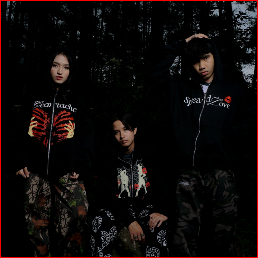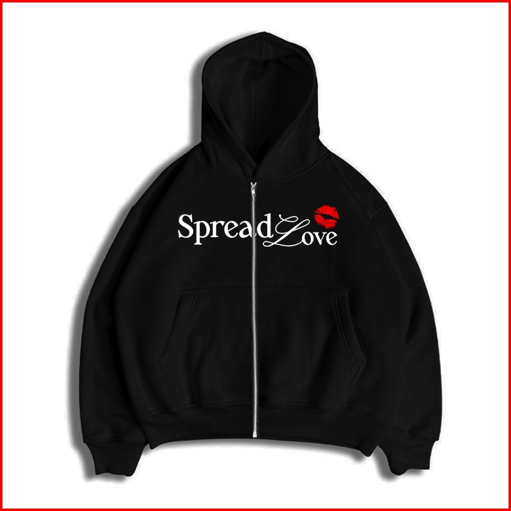 Convergent Boxy Zip Hoodie Spread - Black Hoodie Pria Wanita Unisex