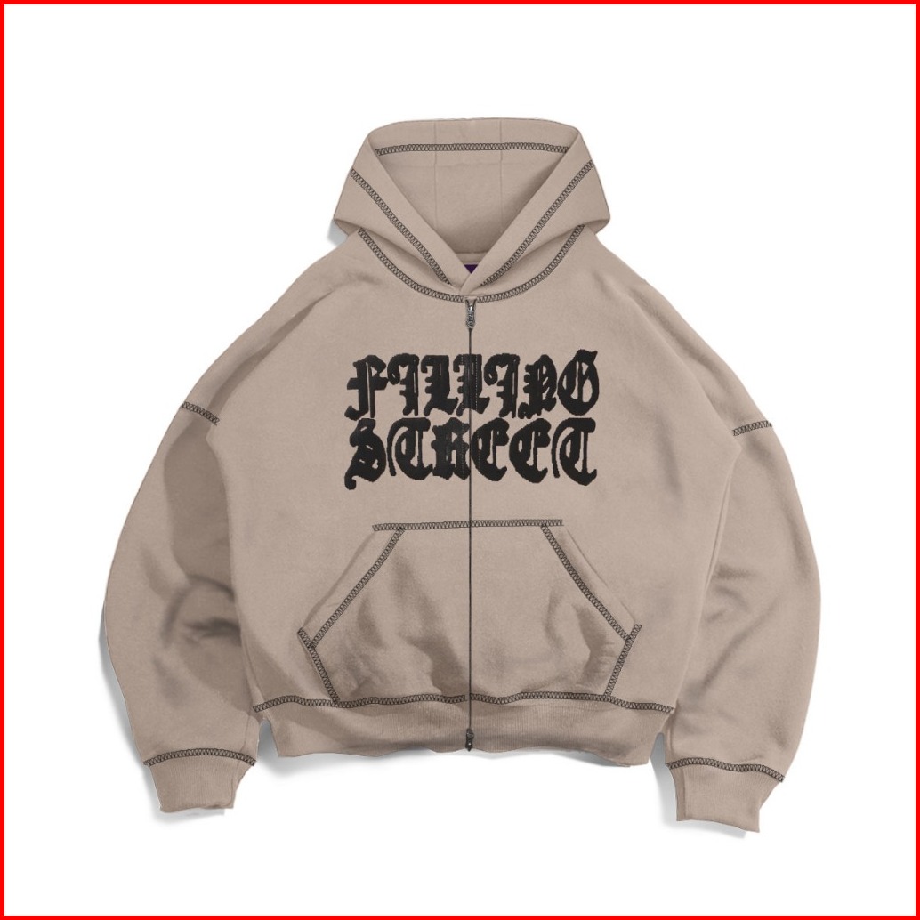 Double Zip Hoodie Boxy Oversize Fillingstreet - Holly Beige