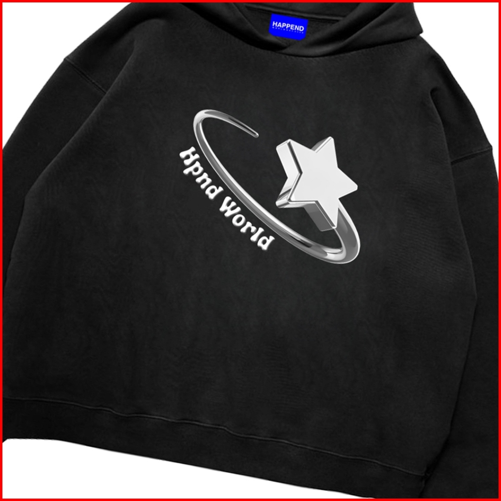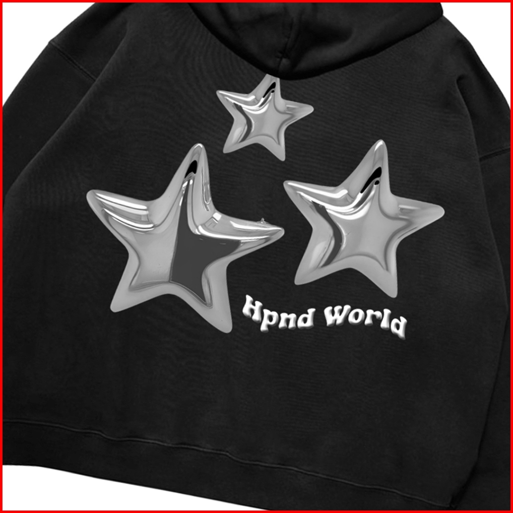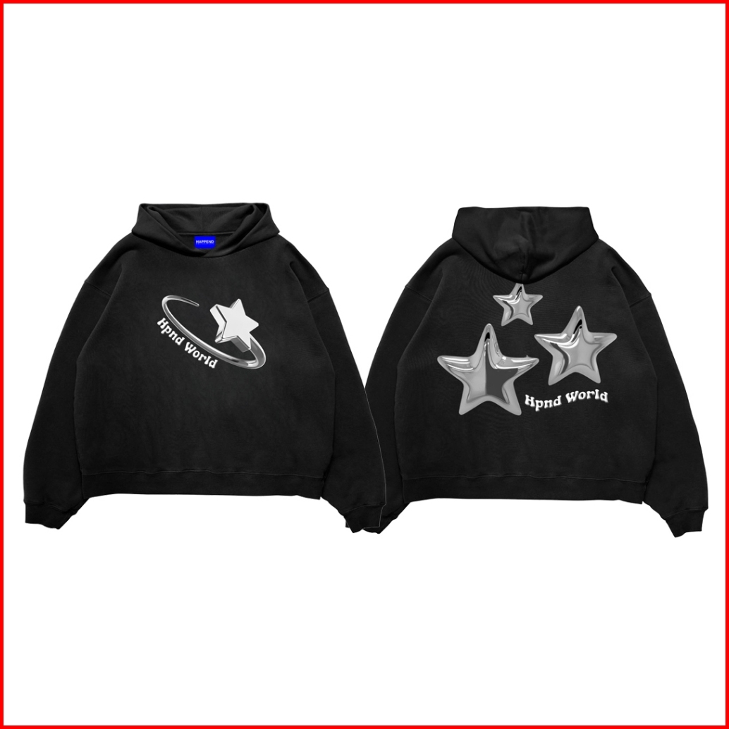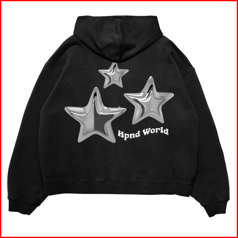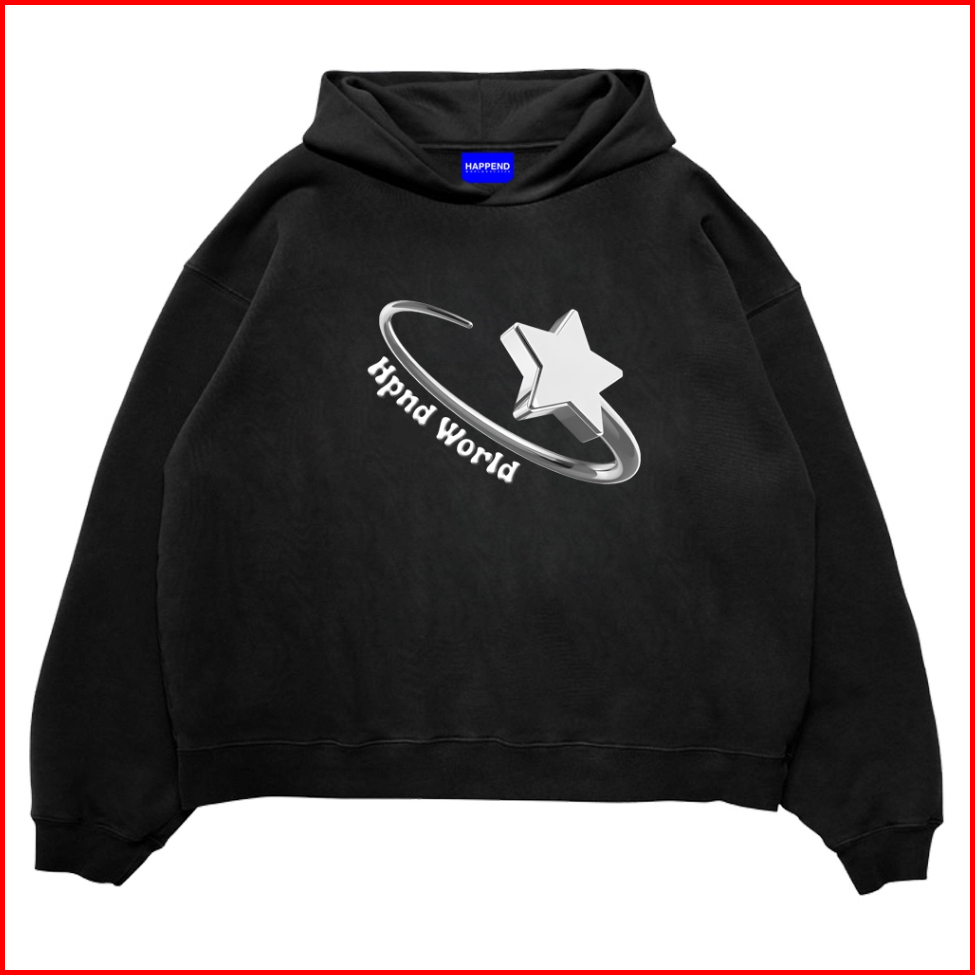 Hpnd - Sweater Hoodie Boxy Fit Original Basic Three Metal Black Fleece Limited Edition