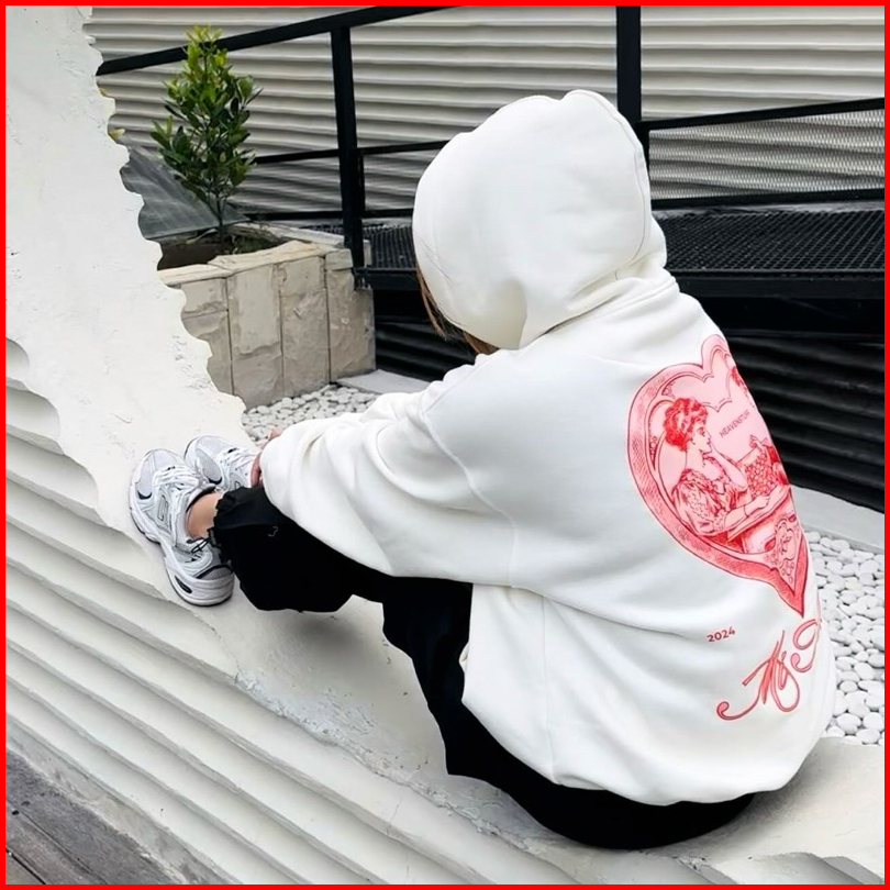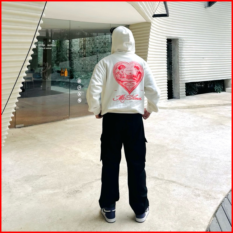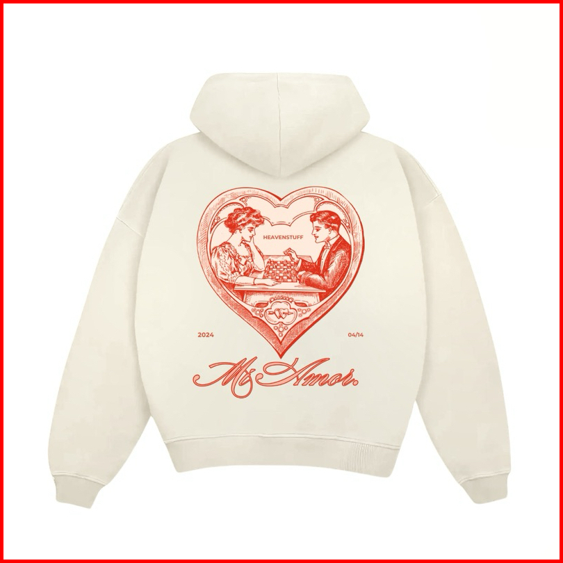 Hoodie Boxy 330gsm Mi Amor Heaven Broken White