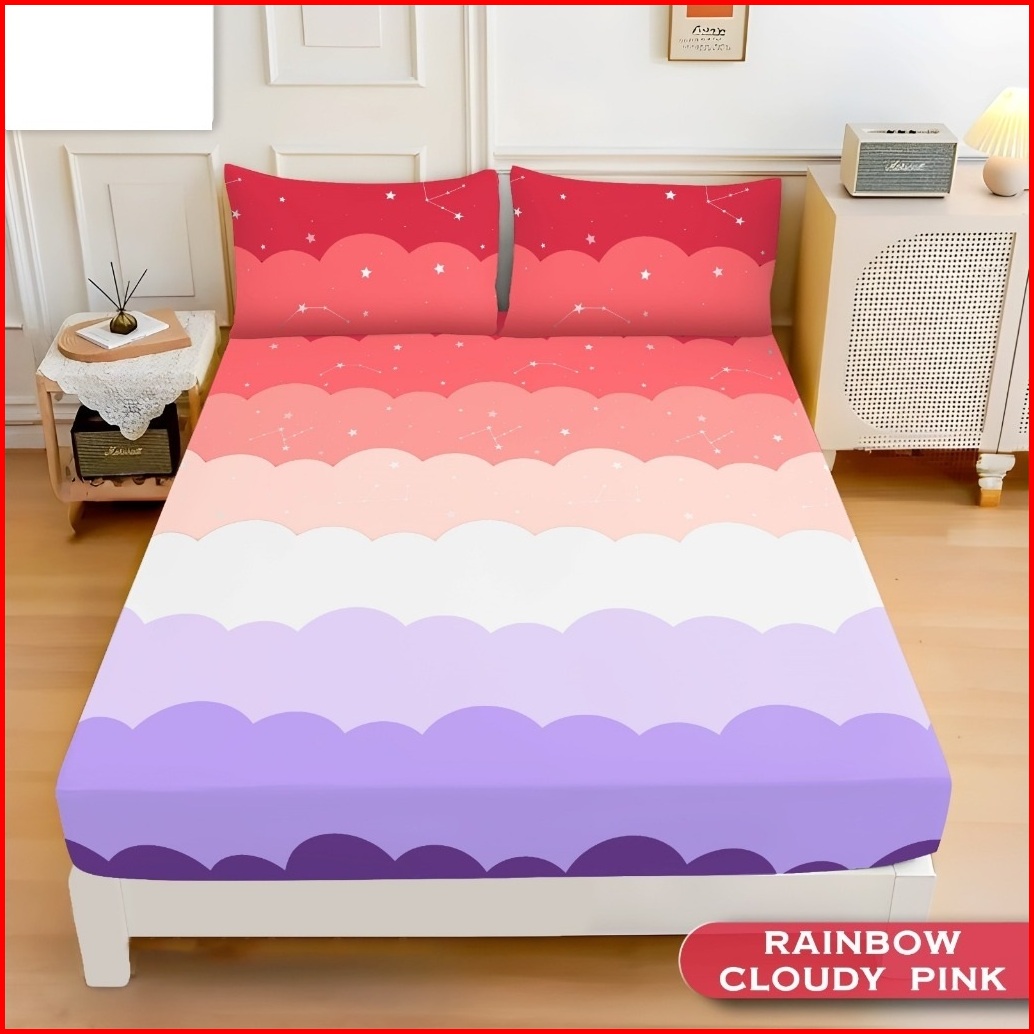 Sprei Aesthetic Terbaru Motif Cloud Rainbow Sprei Aesthetic Motif Cantik Sprei Cloud Rainbow Sprei Pelangi Terbaru