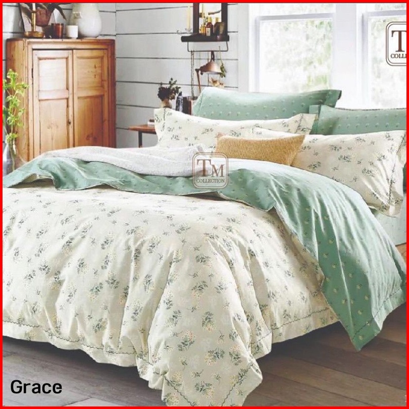 Sprei Set Anti Geser Aesthetic Sprei Katun Lokal Cvc Murah Motif Grace Best Seller