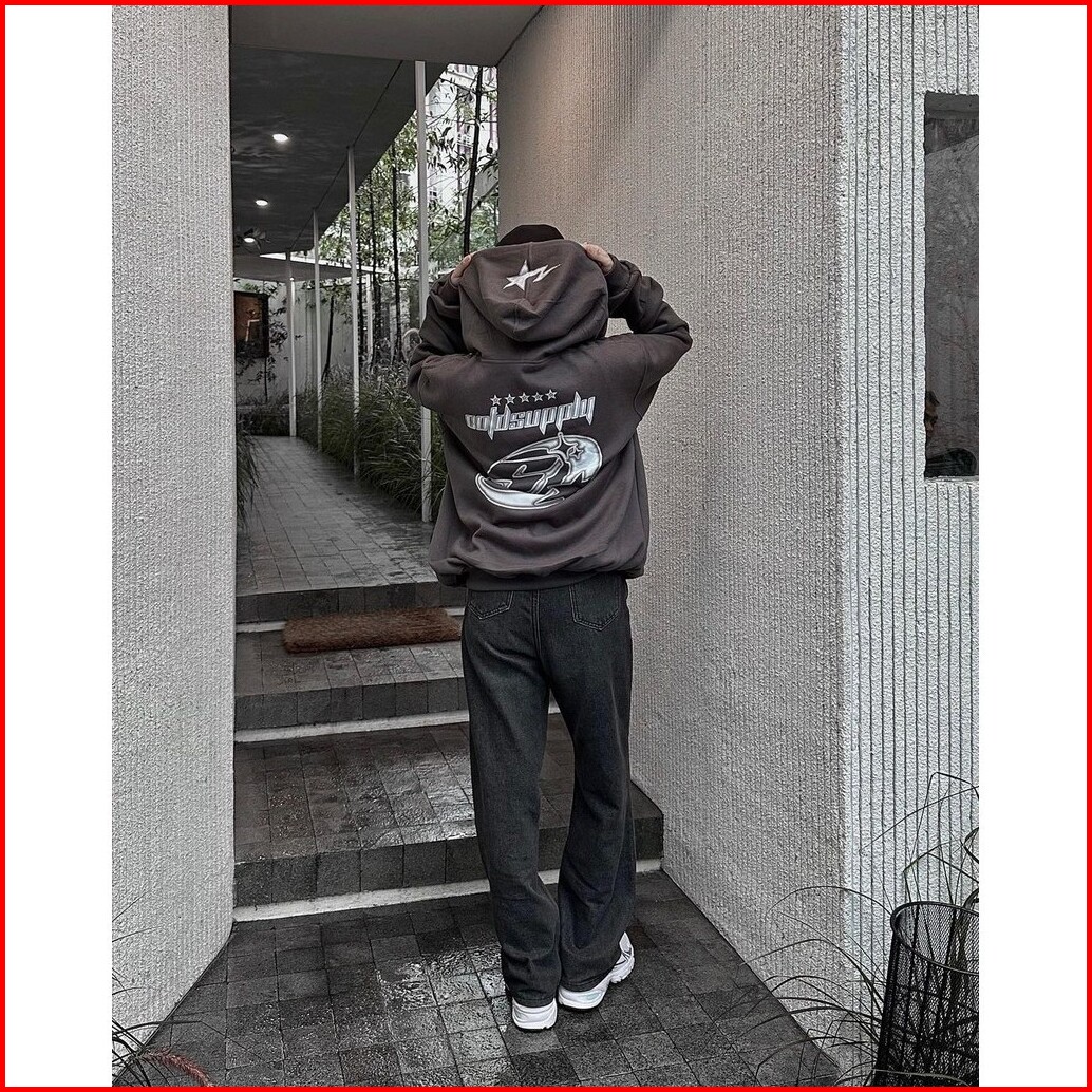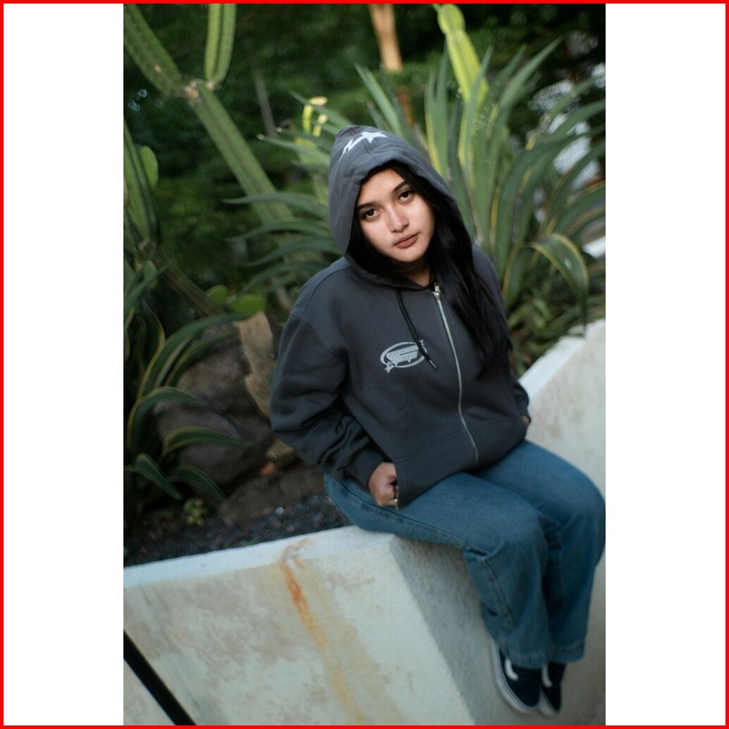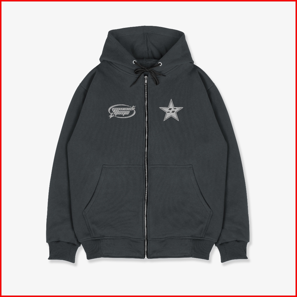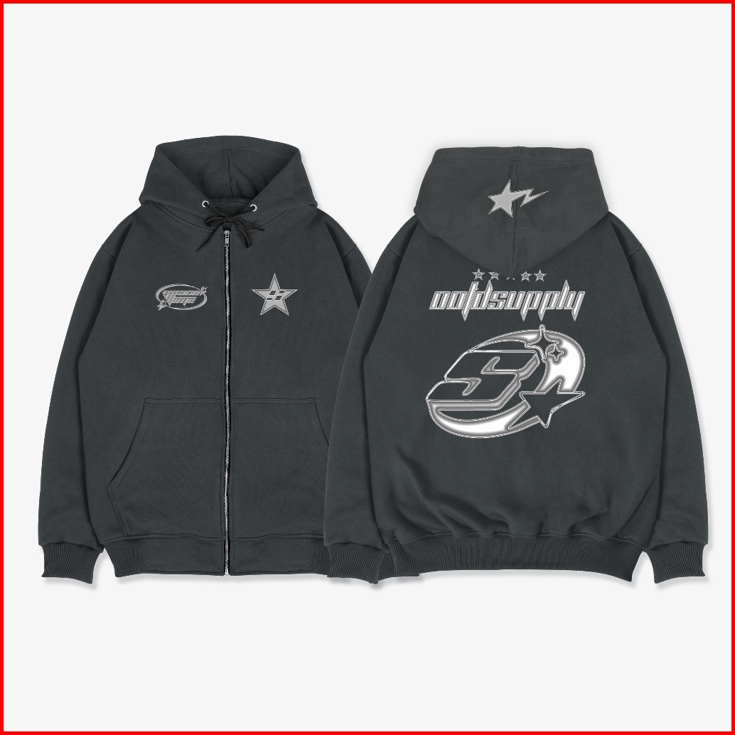 Ootdsupply - Zipper Hoodie Space Time Dark Grey Hoodie Pria Wanita Hdz005