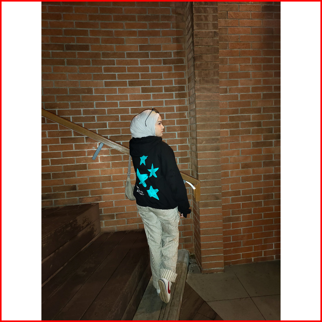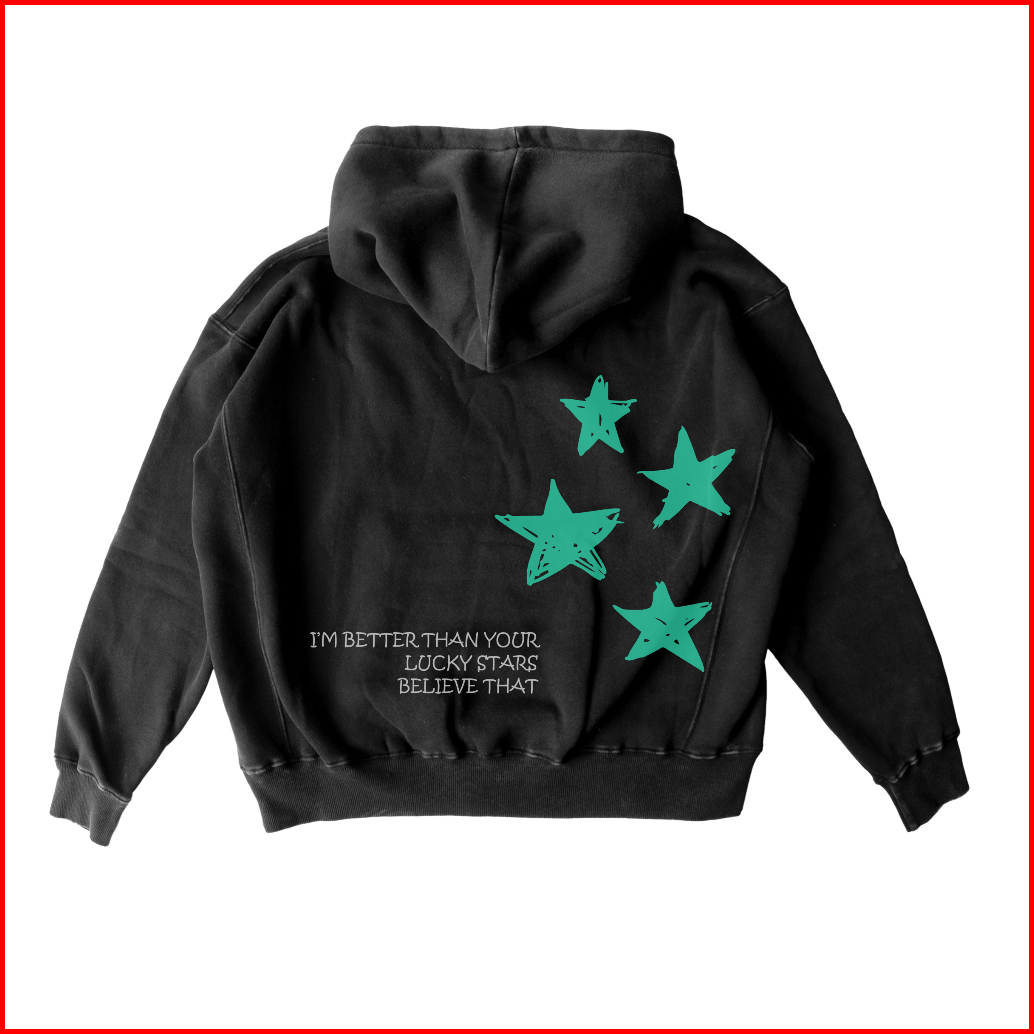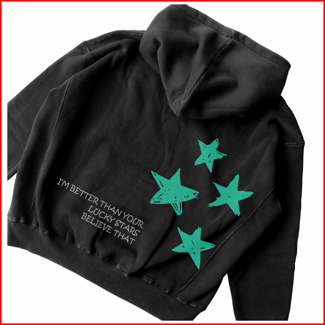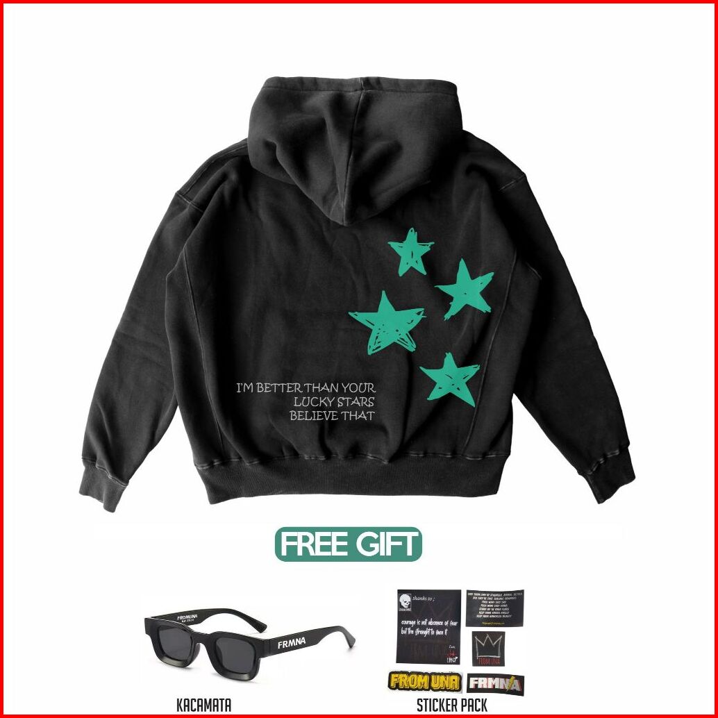 From Una Hoodie Boxy 330 Gsm - Lucky Stars Oversized Hoodie Black