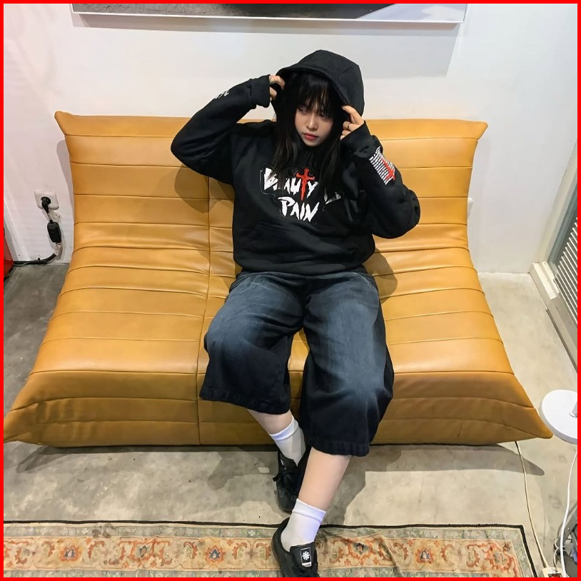 Dreammuse Hoodie Boxy 375 Gsm - Beauty Is Pain Oversized Hoodie Black