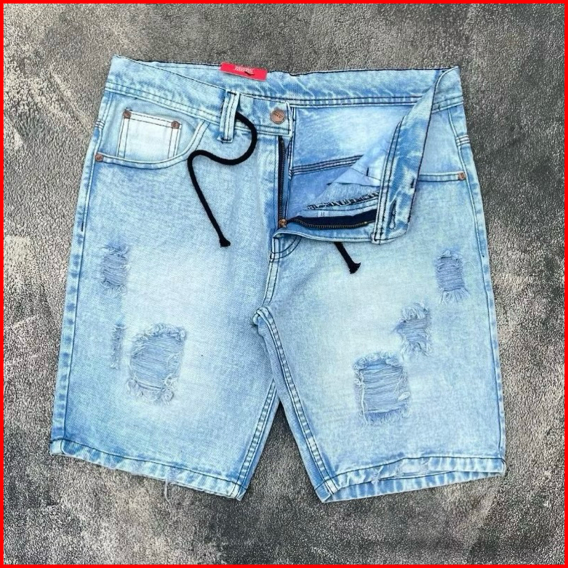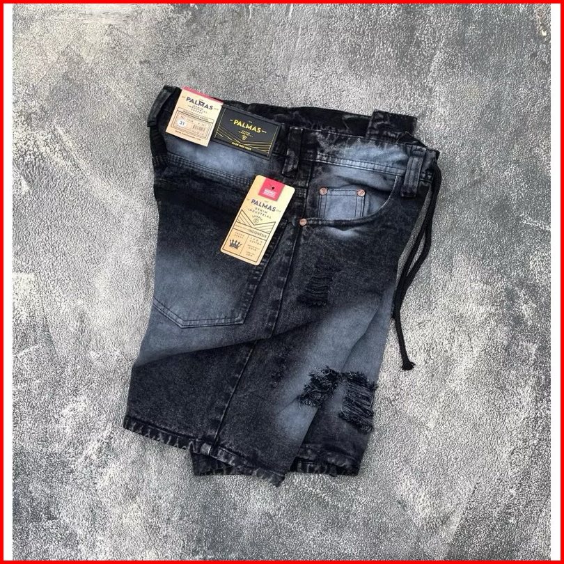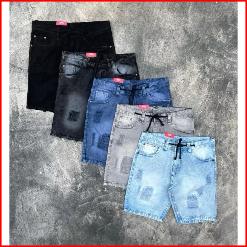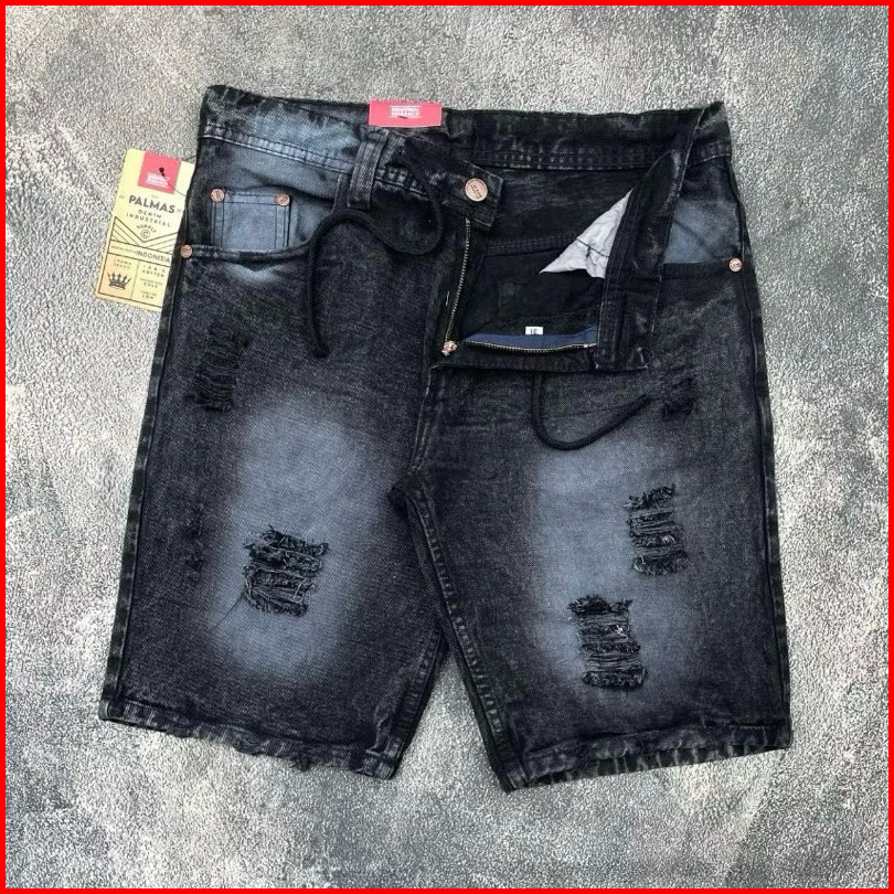 Celana Jeans Pendek Sobek Hitam Bermuda Pria Distro Premium
