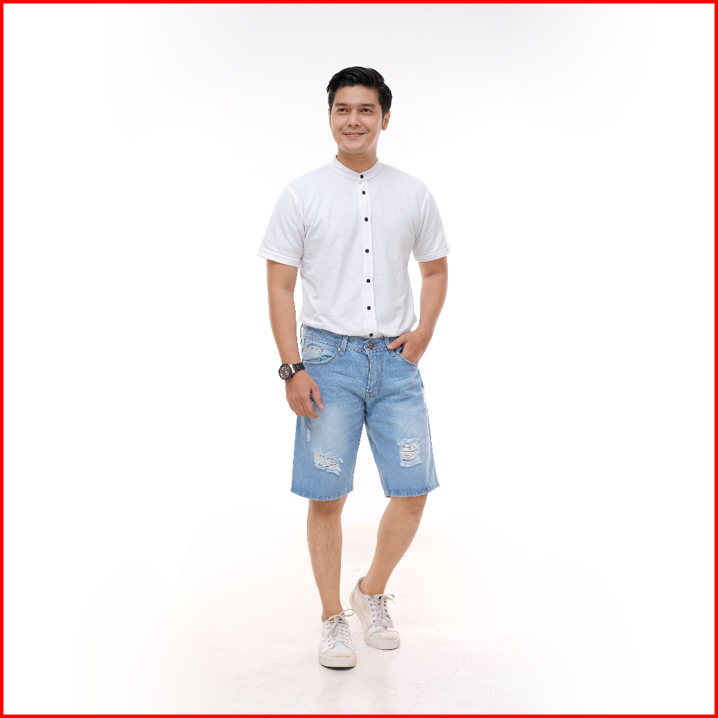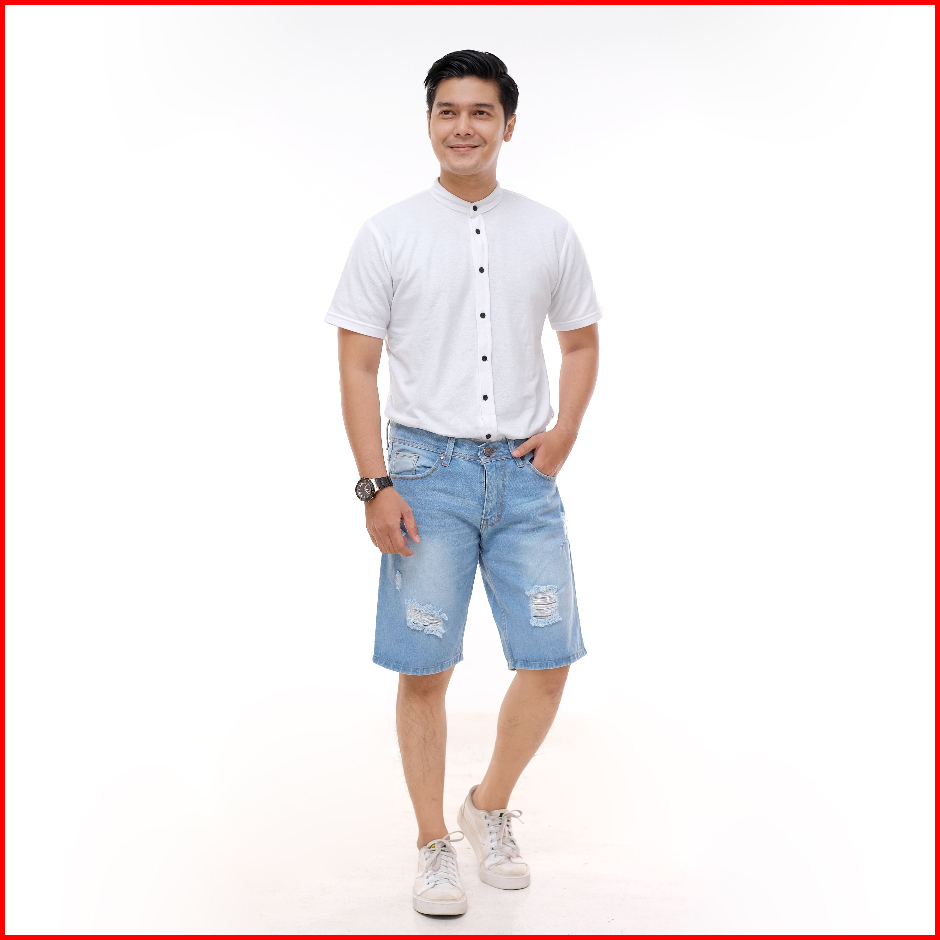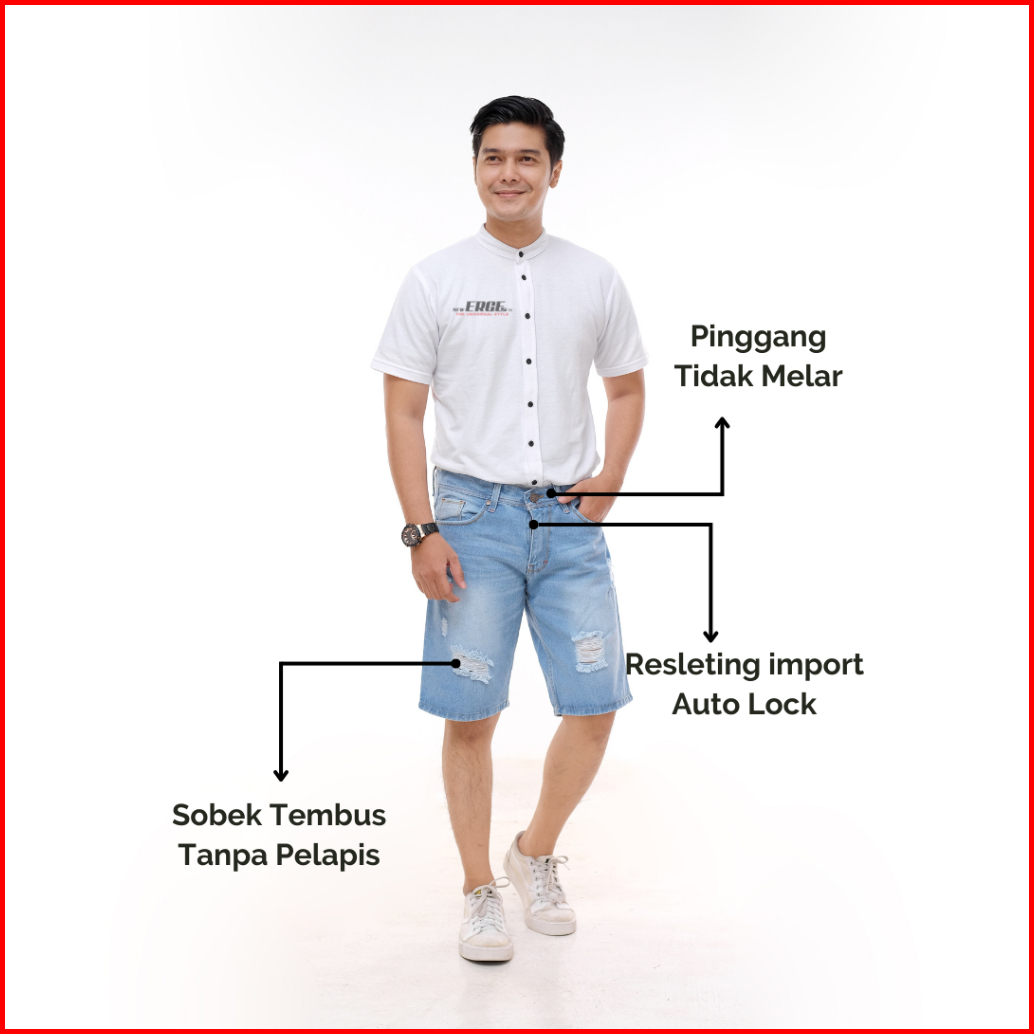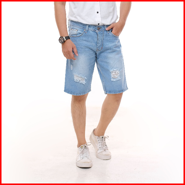 Newerges Celana Jeans Pendek Cowok Robek Distro