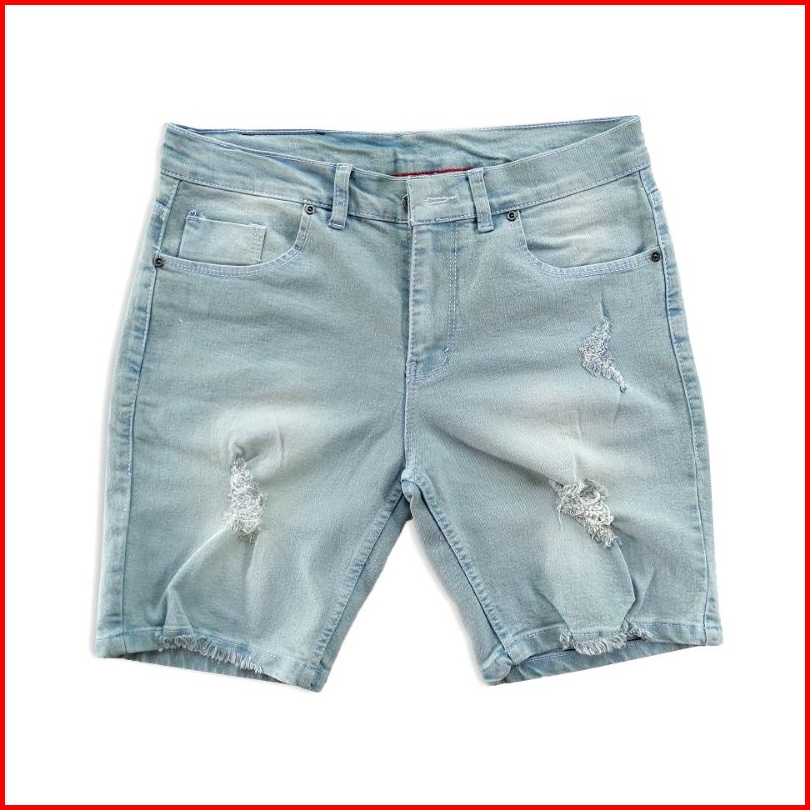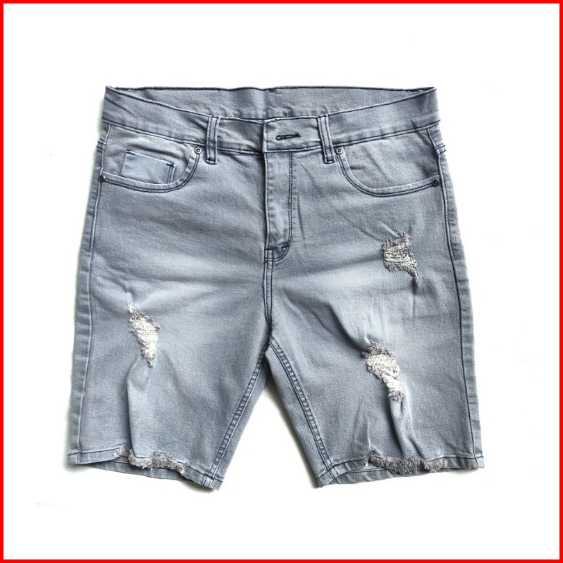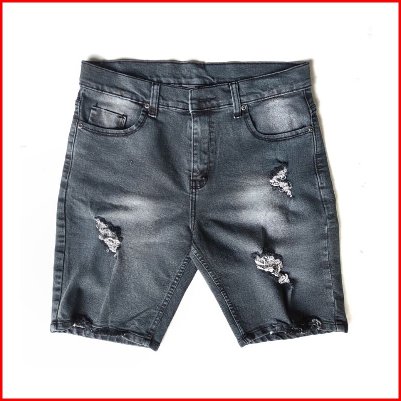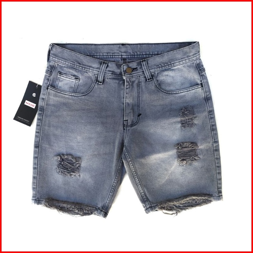 Bunbe - Celana Jeans Pendek Sobek Pria Stretch Original