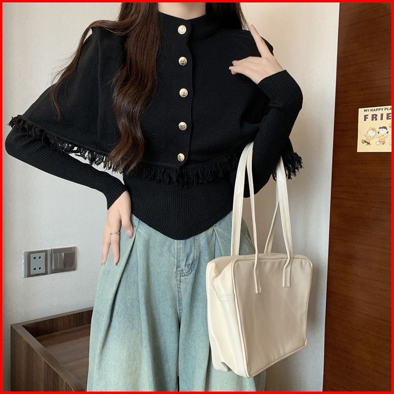 Tteuda Atasan Rajut Wanita Rumbai Dada Knit Kekinian Atasan Wanita Rumbai Dada Knit Premium Lengan Panjang Baju Wanita R