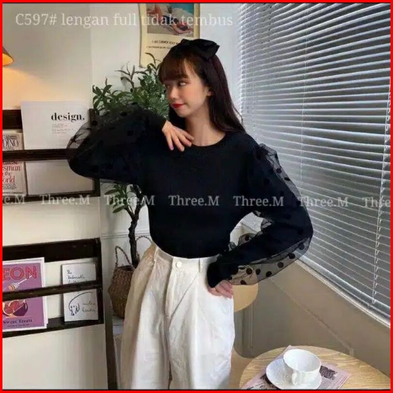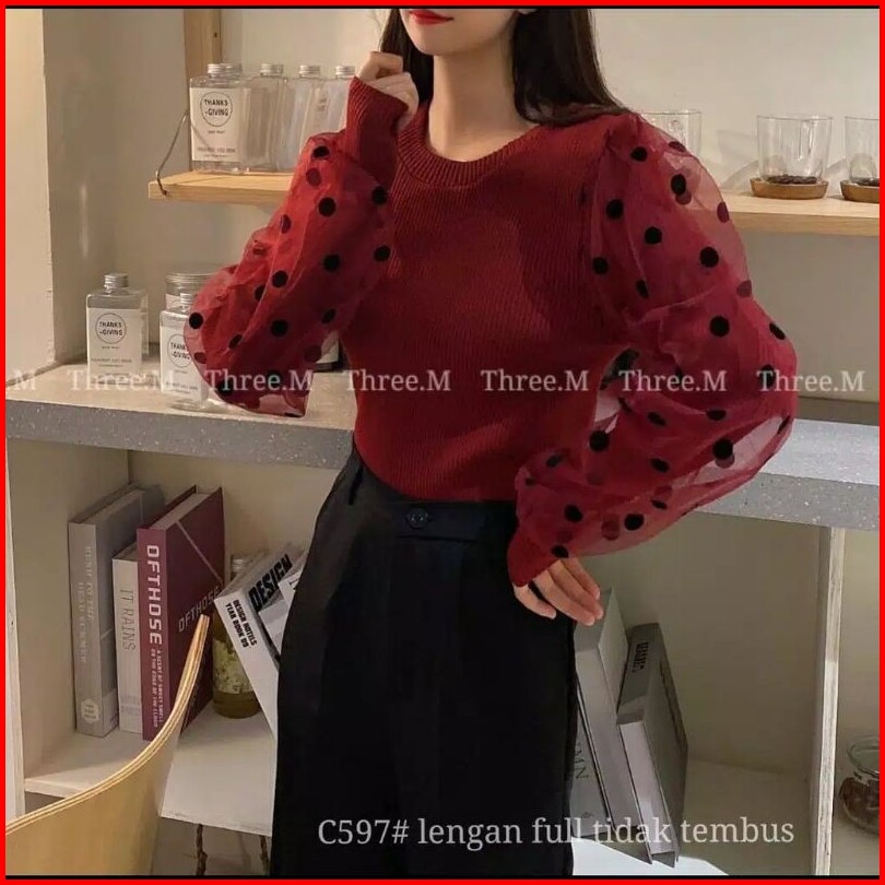 Ready Tm C597 Atasan Knit Polka Tops Import