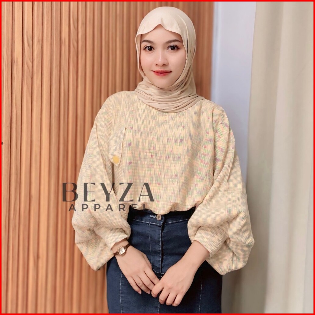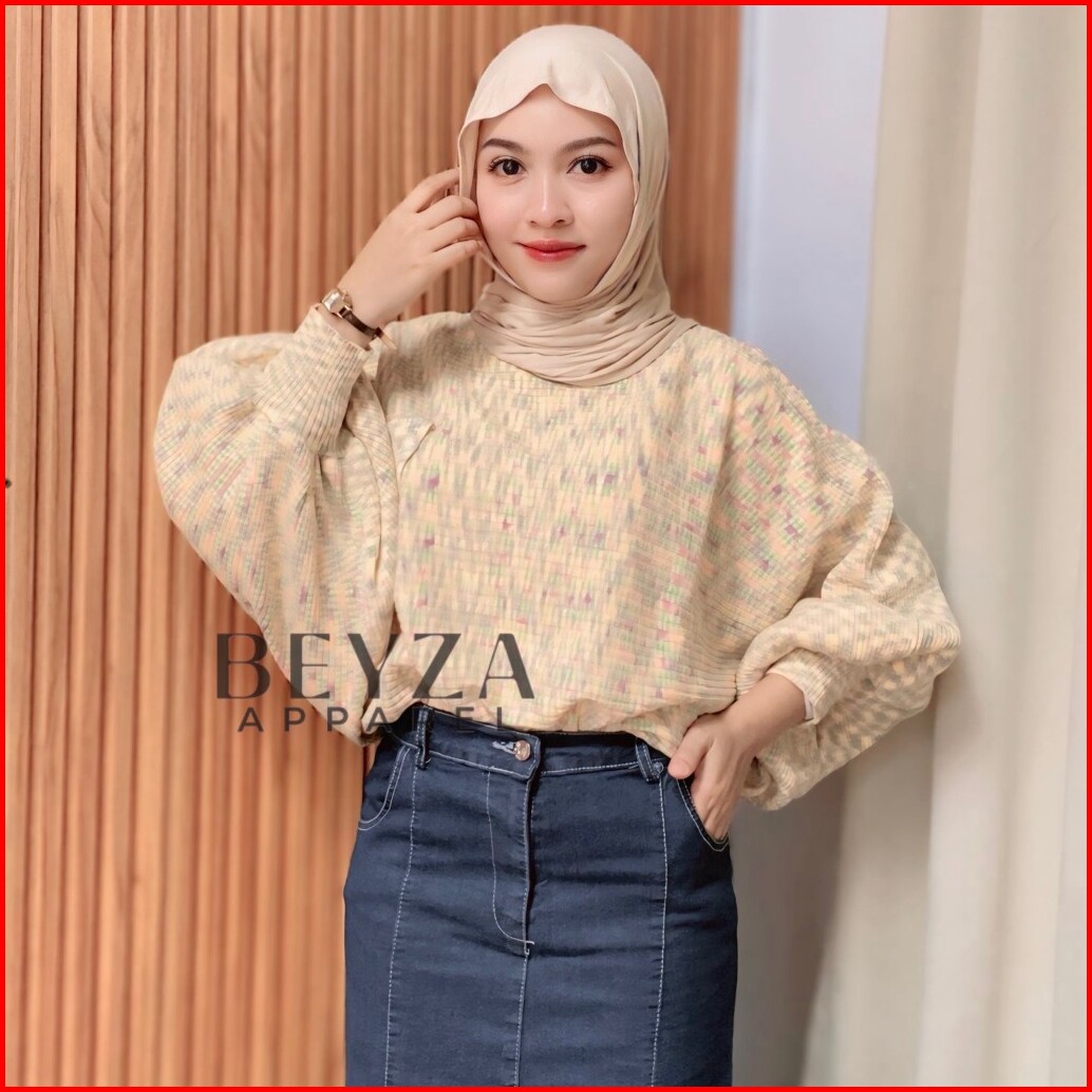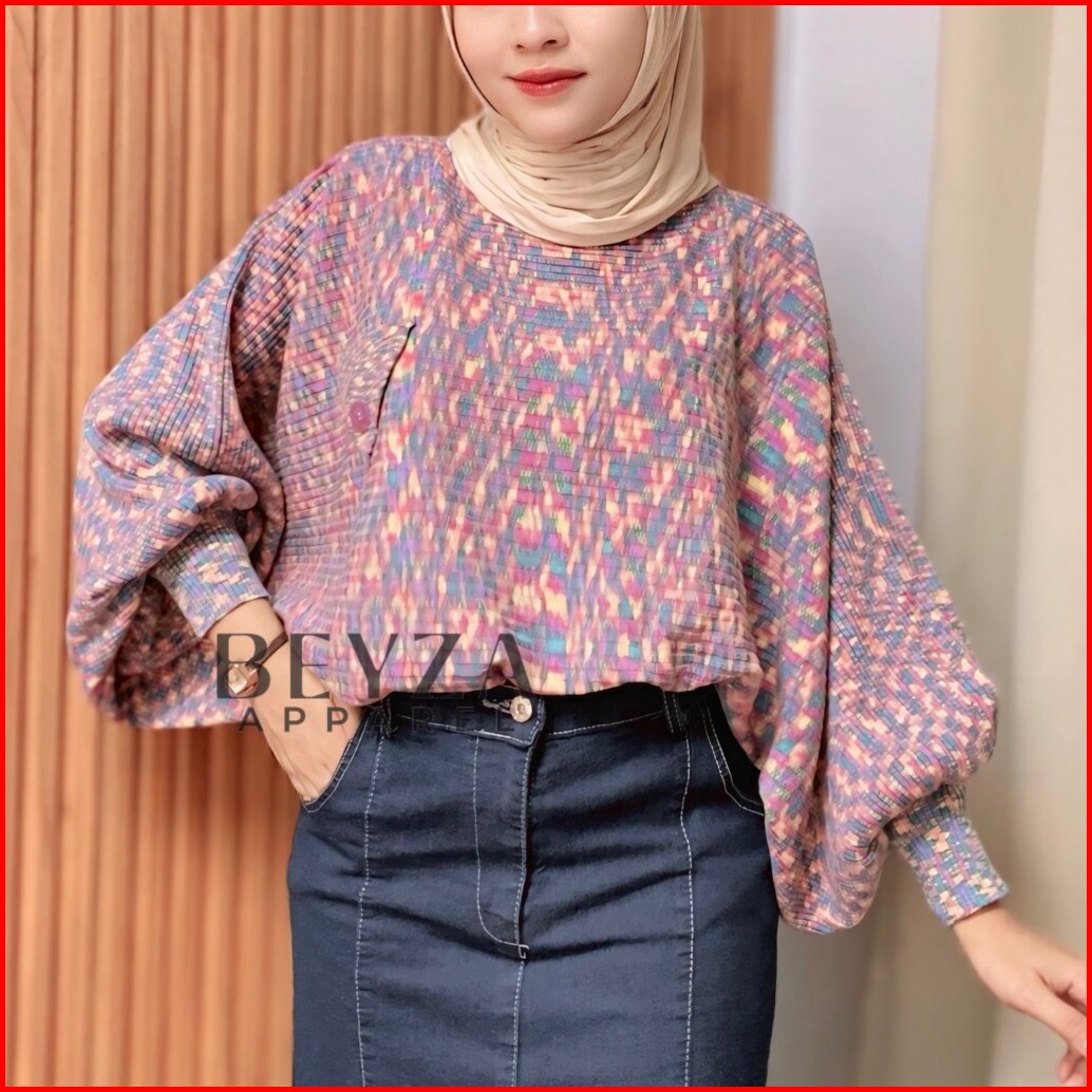 Beyza Apparel Karin Batwing Rajut Premium Atasan Wanita Korean Style Motif Abstract Blouse Kelelawar Lengan Balon