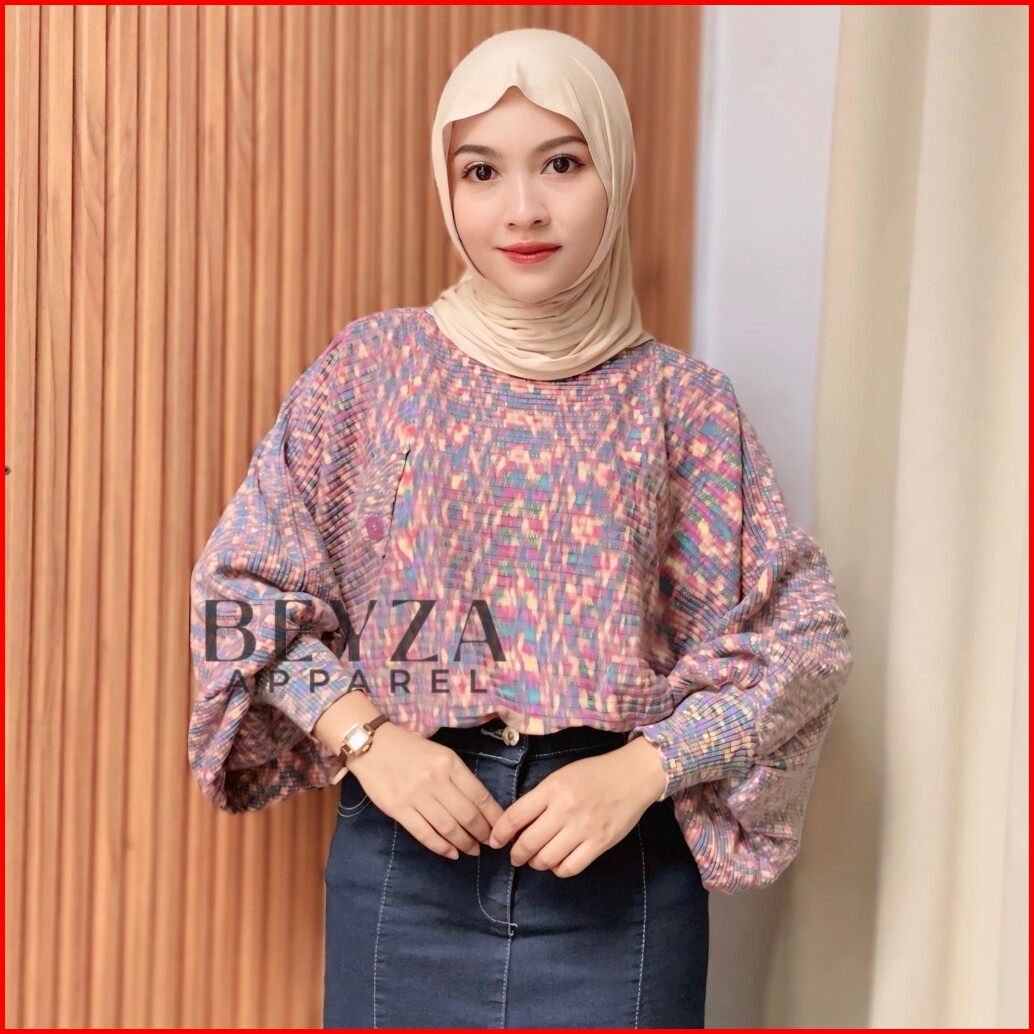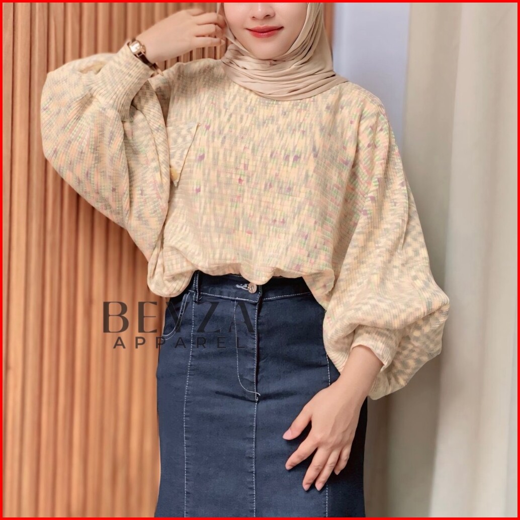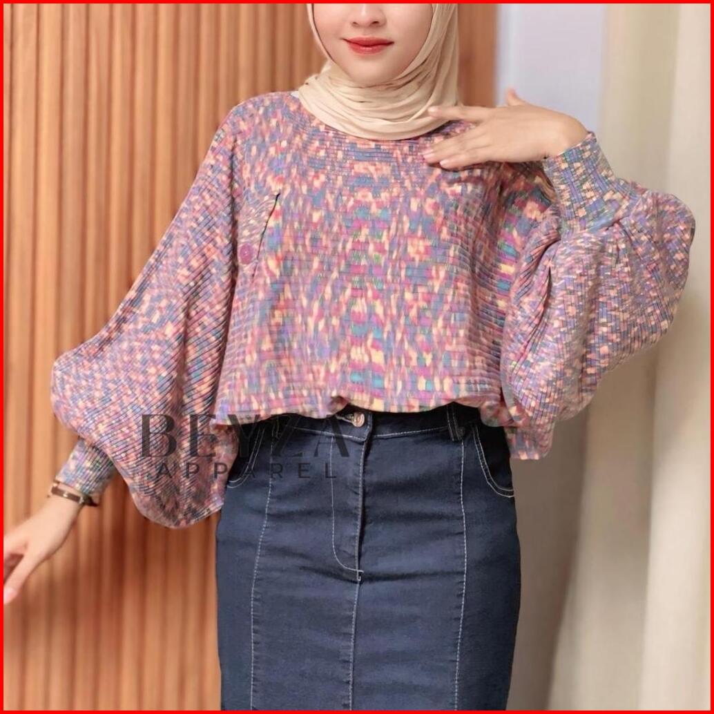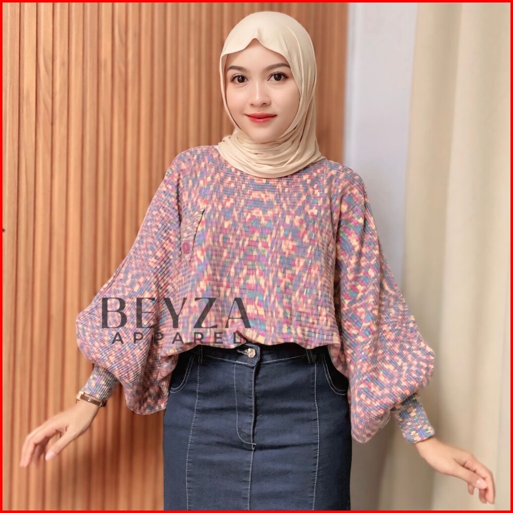 Beyza Apparel Karin Batwing Rajut Premium Atasan Wanita Korean Style Motif Abstract Blouse Kelelawar Lengan Balon