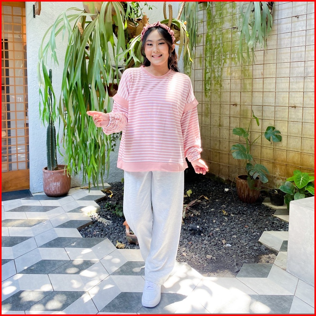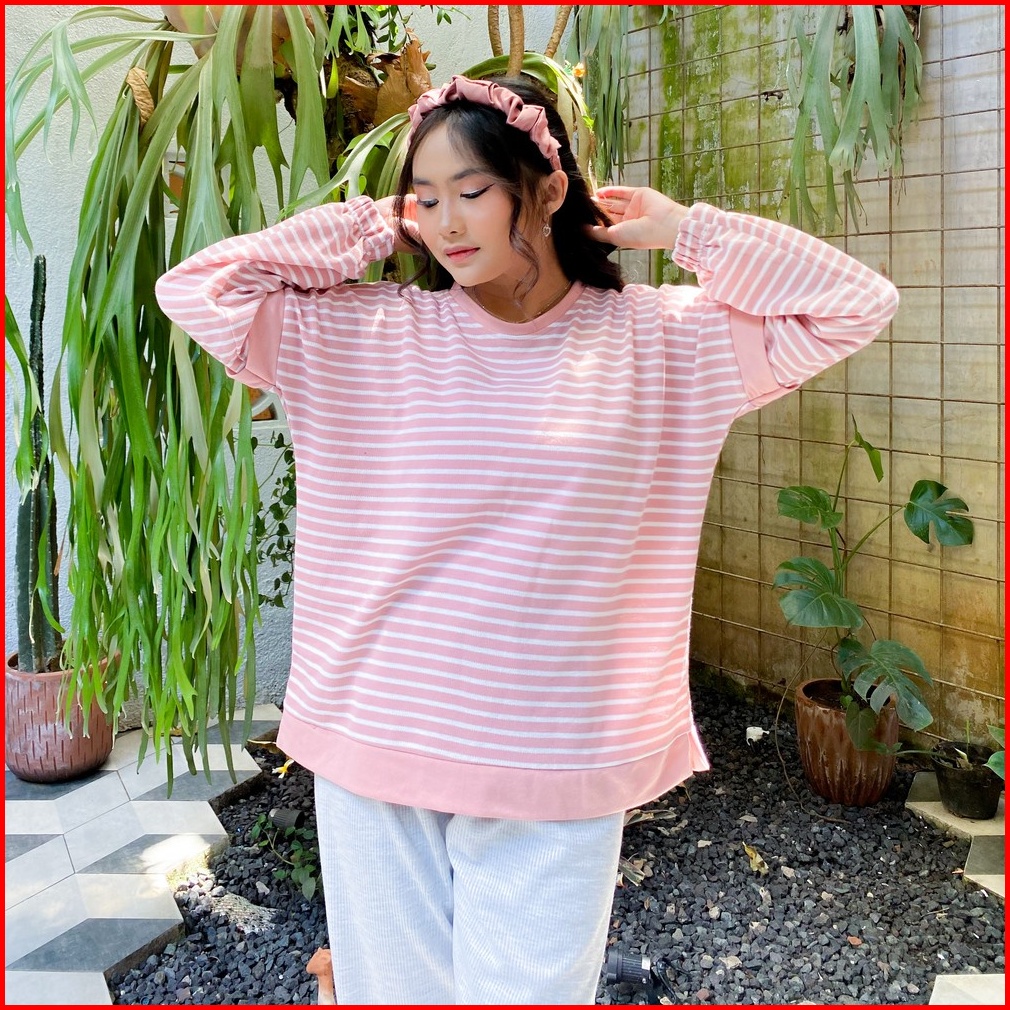 Yoenik Apparel Sheefa Ayumi Stripe Tops Dusty M15480 R13s3 - Atasan Wanita Stripe Blouse Lengan Panjang