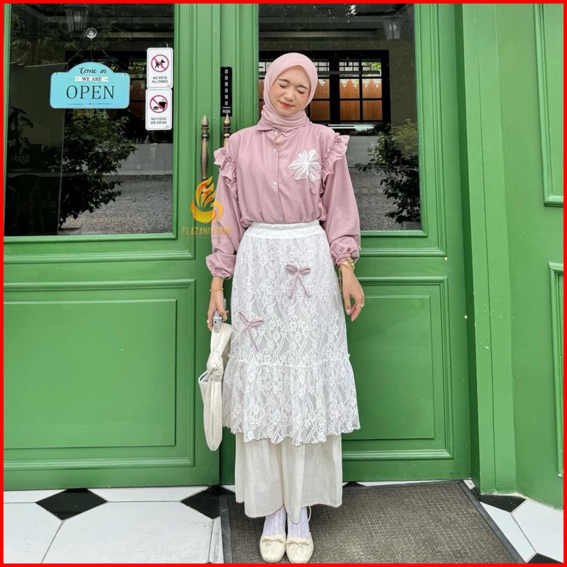 Leyya Blouse Bordir Bunga - Atasan Wanita Aksen Bunga - Kemeja Casual Kerja Pololinen