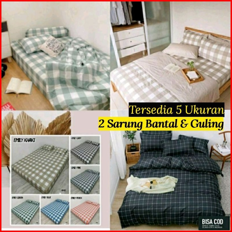 Sprei Aesthic Modern Minimalis Seprei Homemade Korean Style Aesthetic Emily Grid Katun Disperse Bahan Adem Motif Kotak