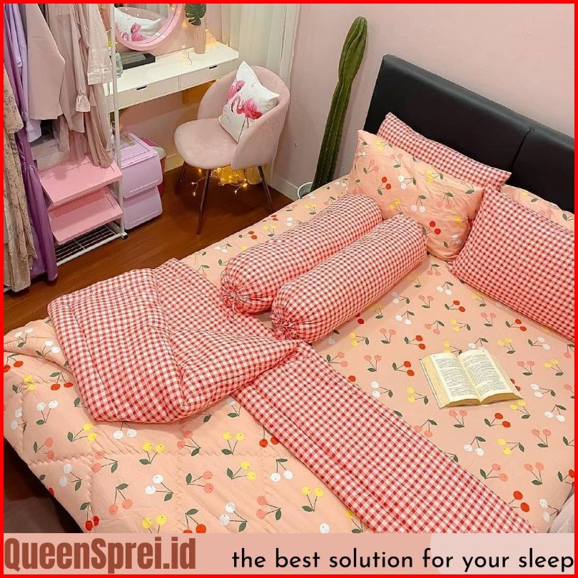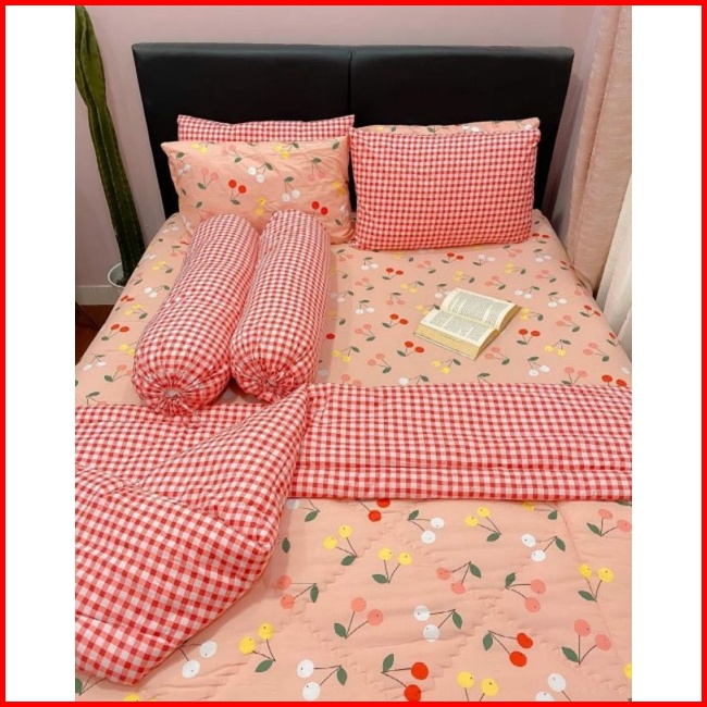 Sprei Homemade Sprei Katun Lokal Premium Sprei Anti Geser Sprei Katun Sprei Motif - Cherry Kiss