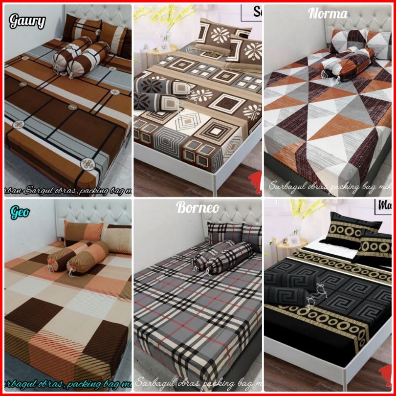 Seprei Karet Motif Mozaik Pink Brown Abstrak Love Grey Triangle Amory