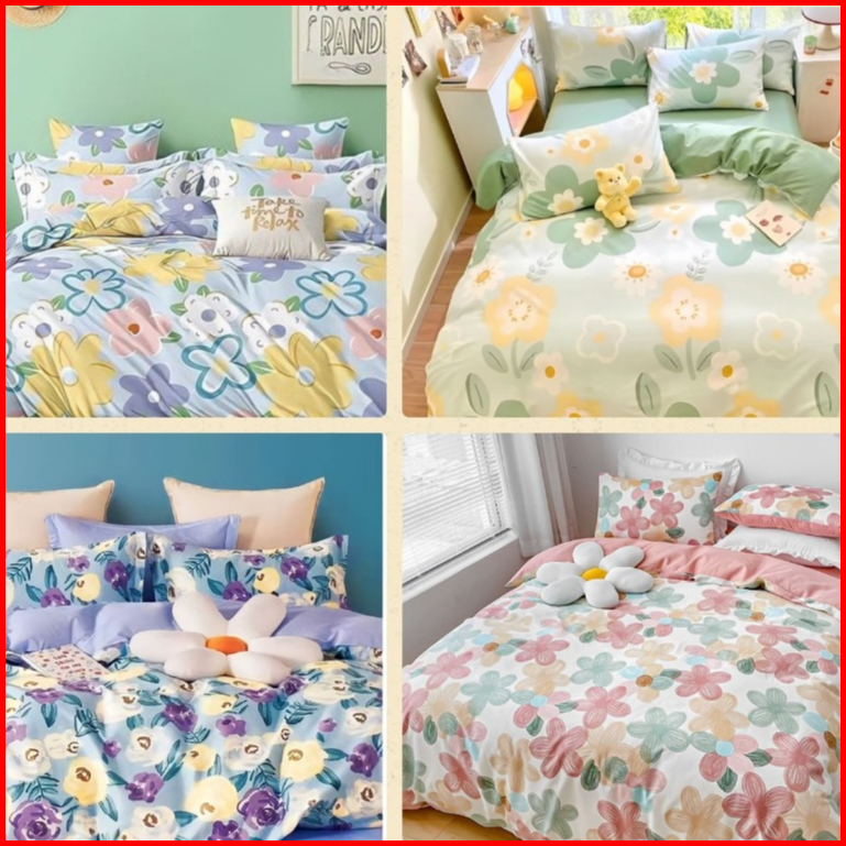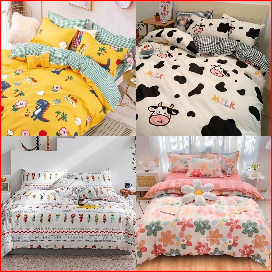 Sprei Seprei Aesthetic Sudut Karet Free Sarung Bantal Dan Guling 120 160 180 Full Set Microtex Disperse Sprei Aesthetic