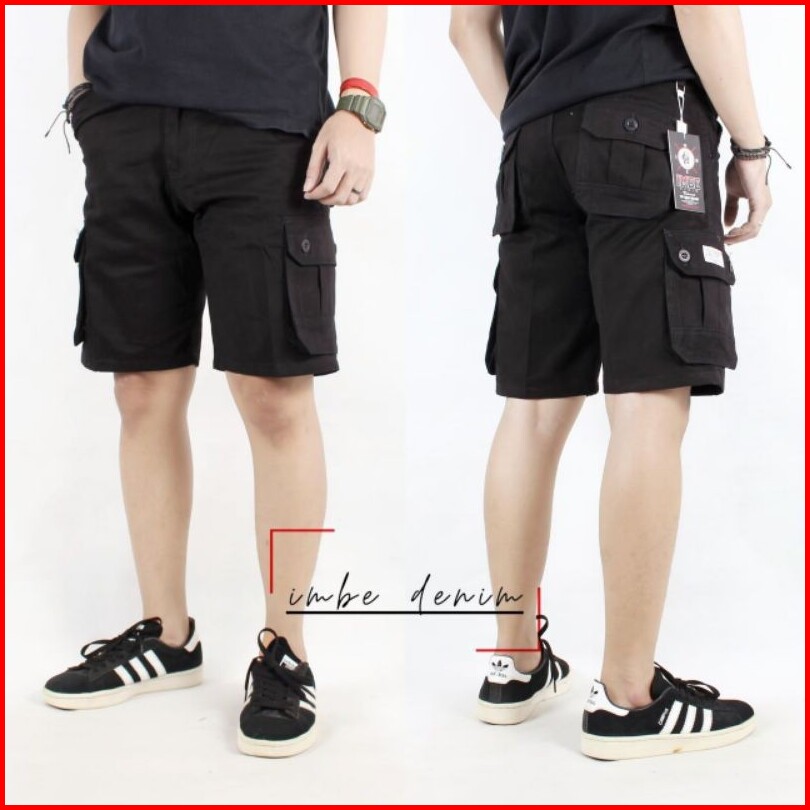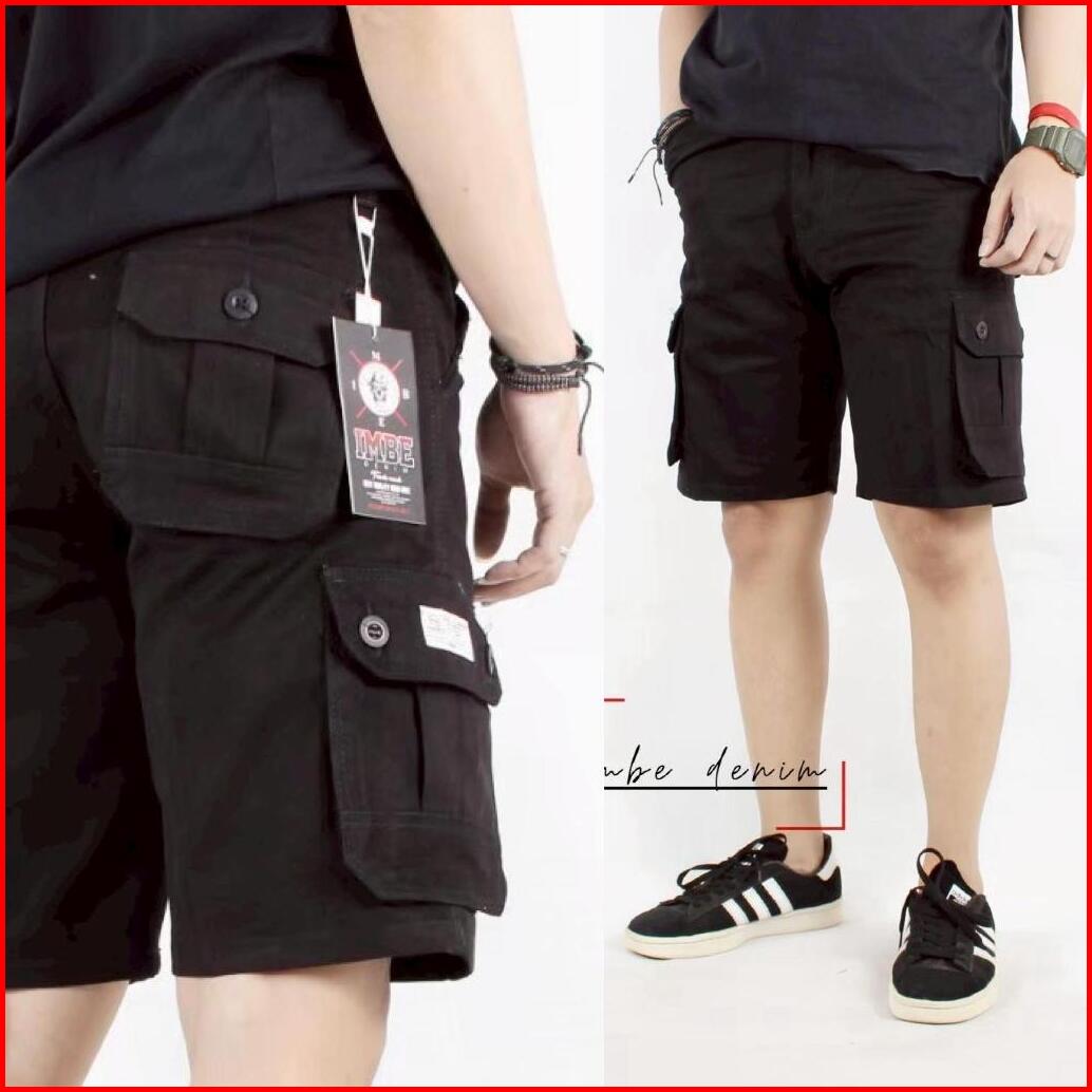 Imbe Denim Celana Pendek Celana Cargo Pendek Pria Celana Cargo Pendek Warna Hitam Seri Art Imb231