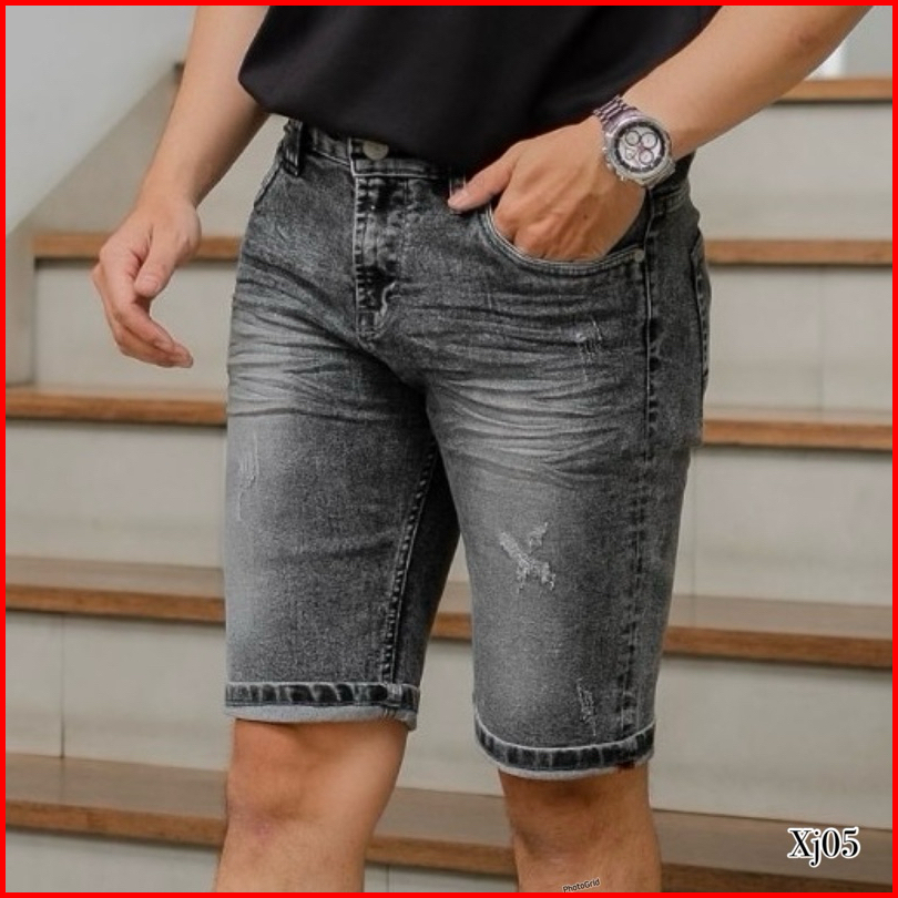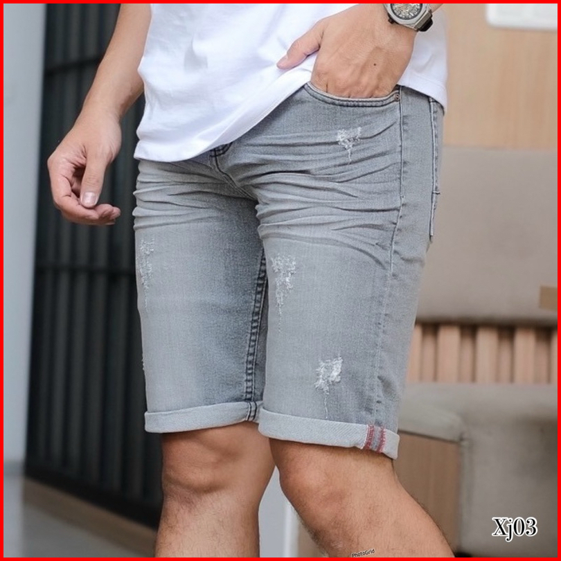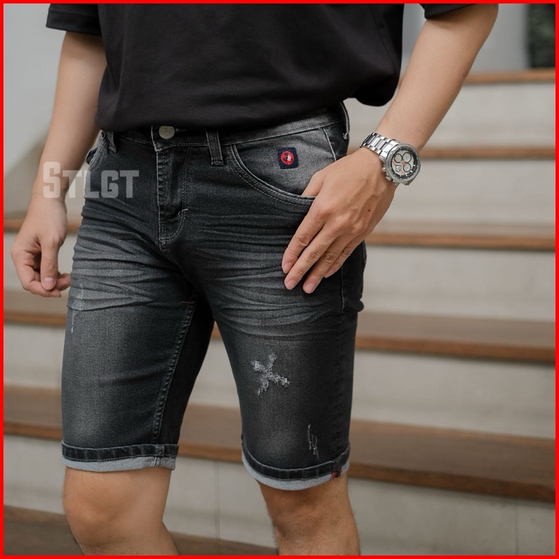 Staylightcelana Jeans Pendek Denim Sobek Cakar Pria