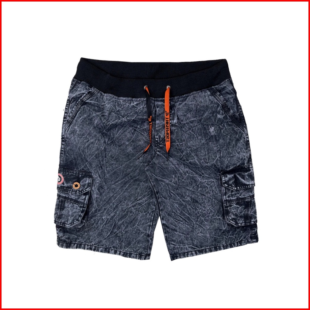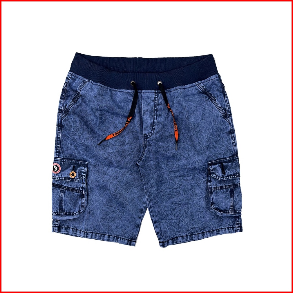 Threemost - Celana Pendek Pria Jeans Kargo Rip Original Pinggang Karet Snow Wash Premium 28-34
