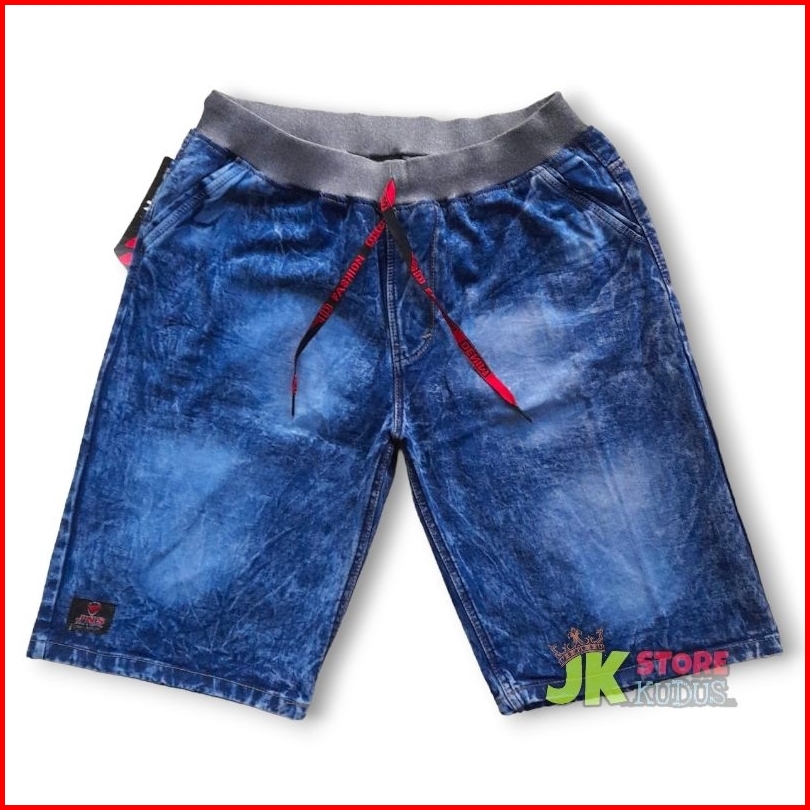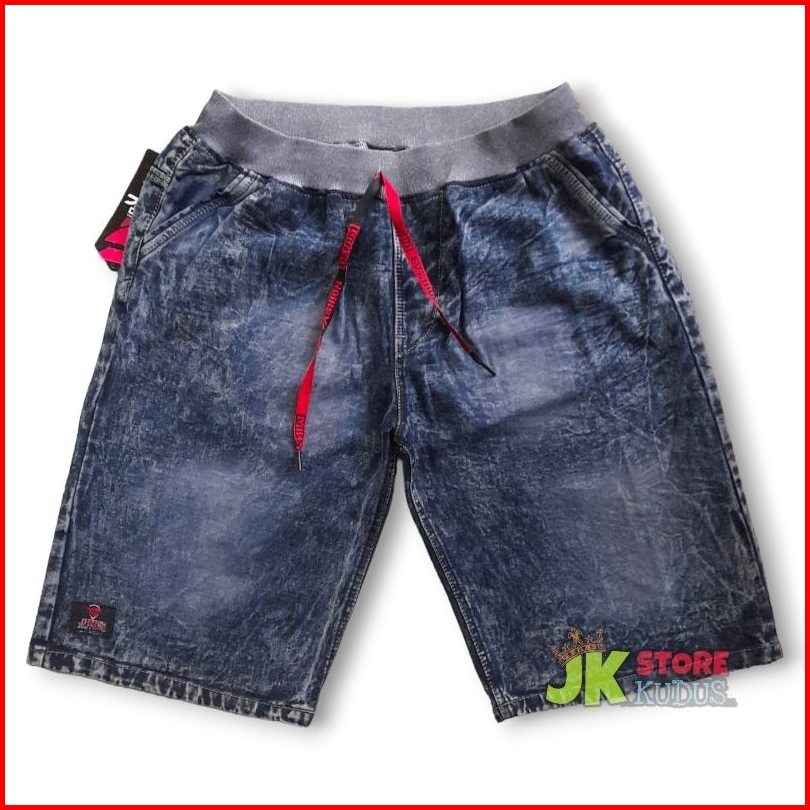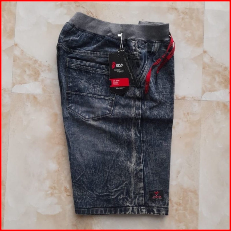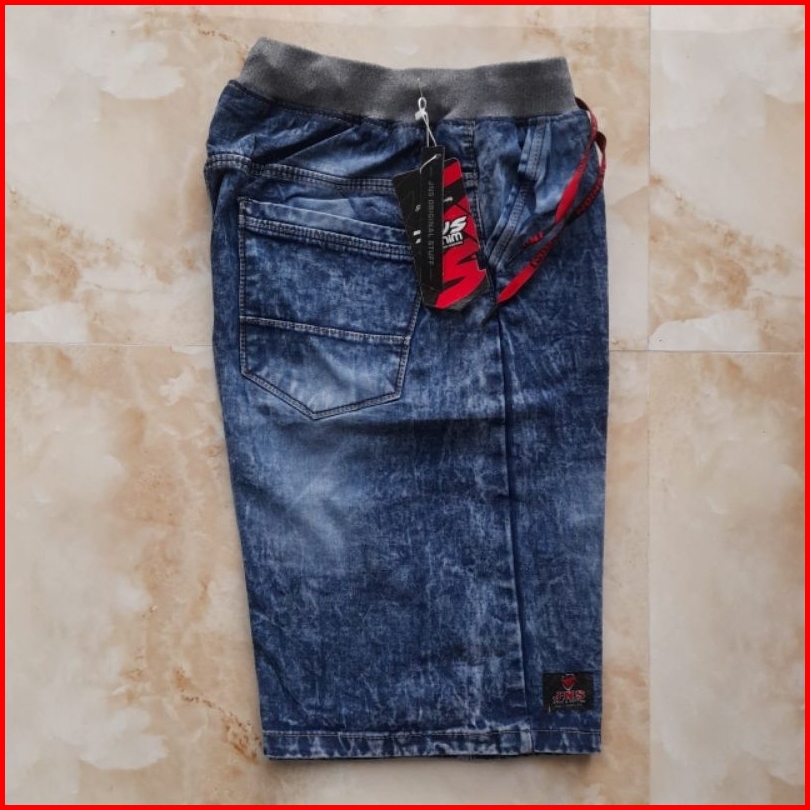 Celana Pendek Pria Jeans Kolor Rip Pinggang Karet