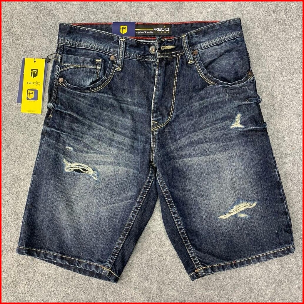 Regio -rp6- Celana Jeans Pendek Pria Sobek Lapis Tidak Melar