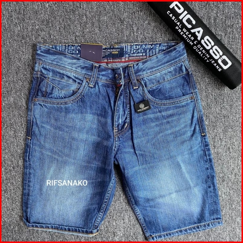 Picasso Celana Jeans Pendek Picasso Original Denim Shorts Pria Dewasa Santai Nyaman