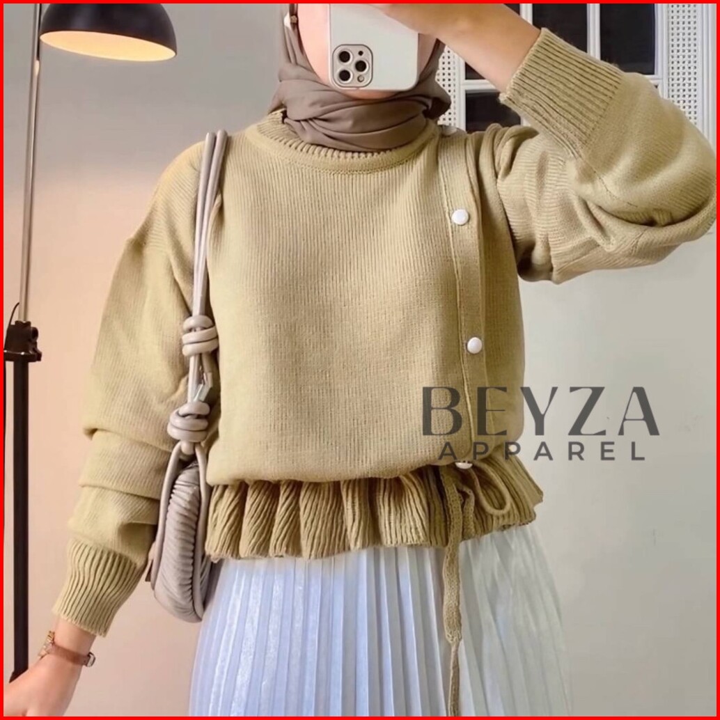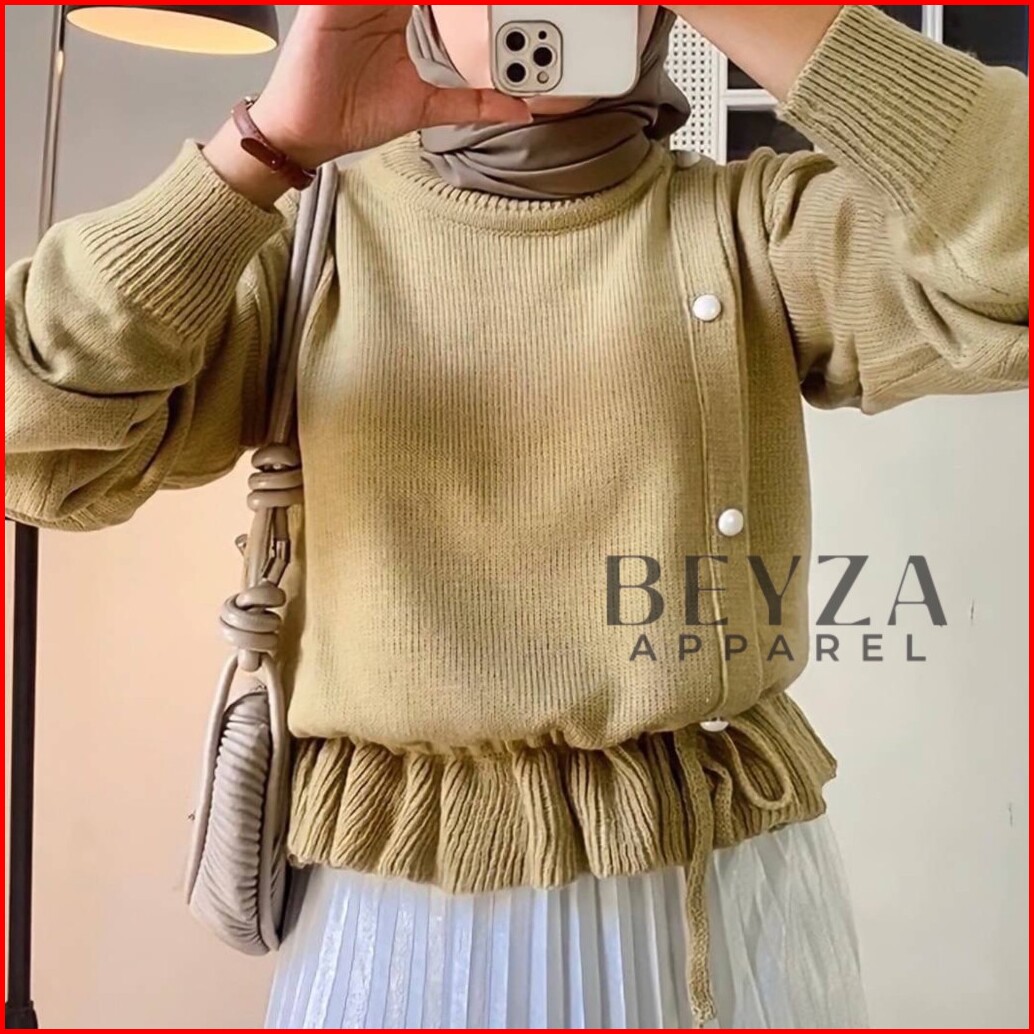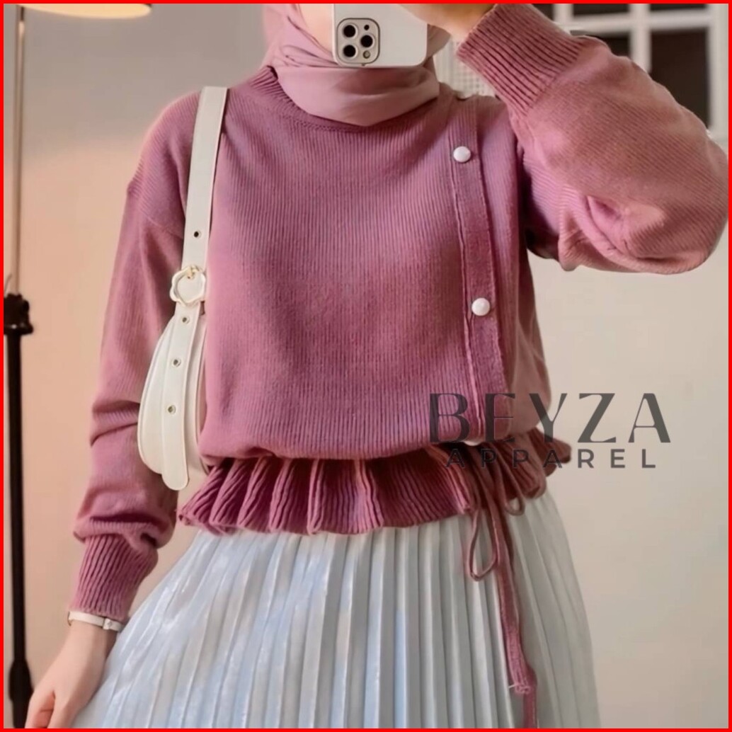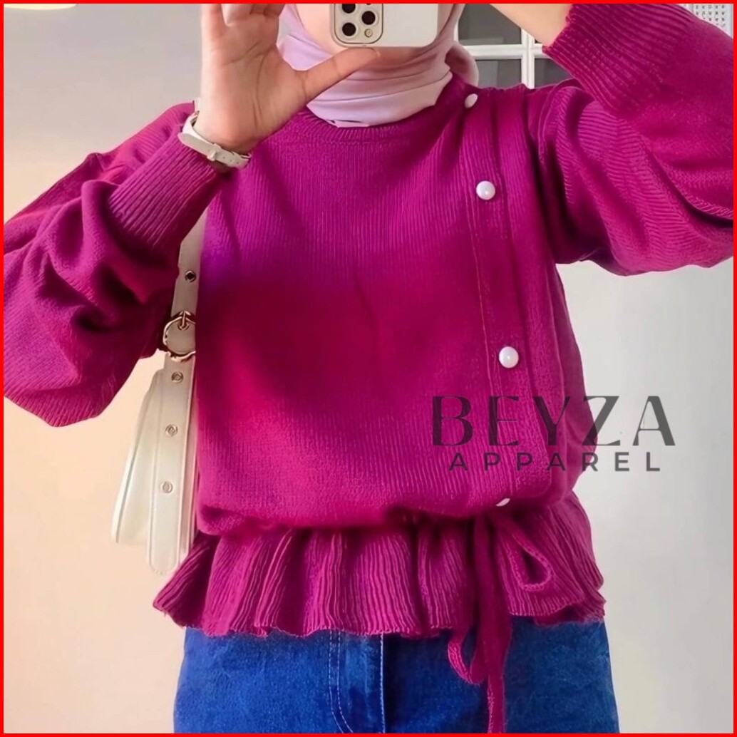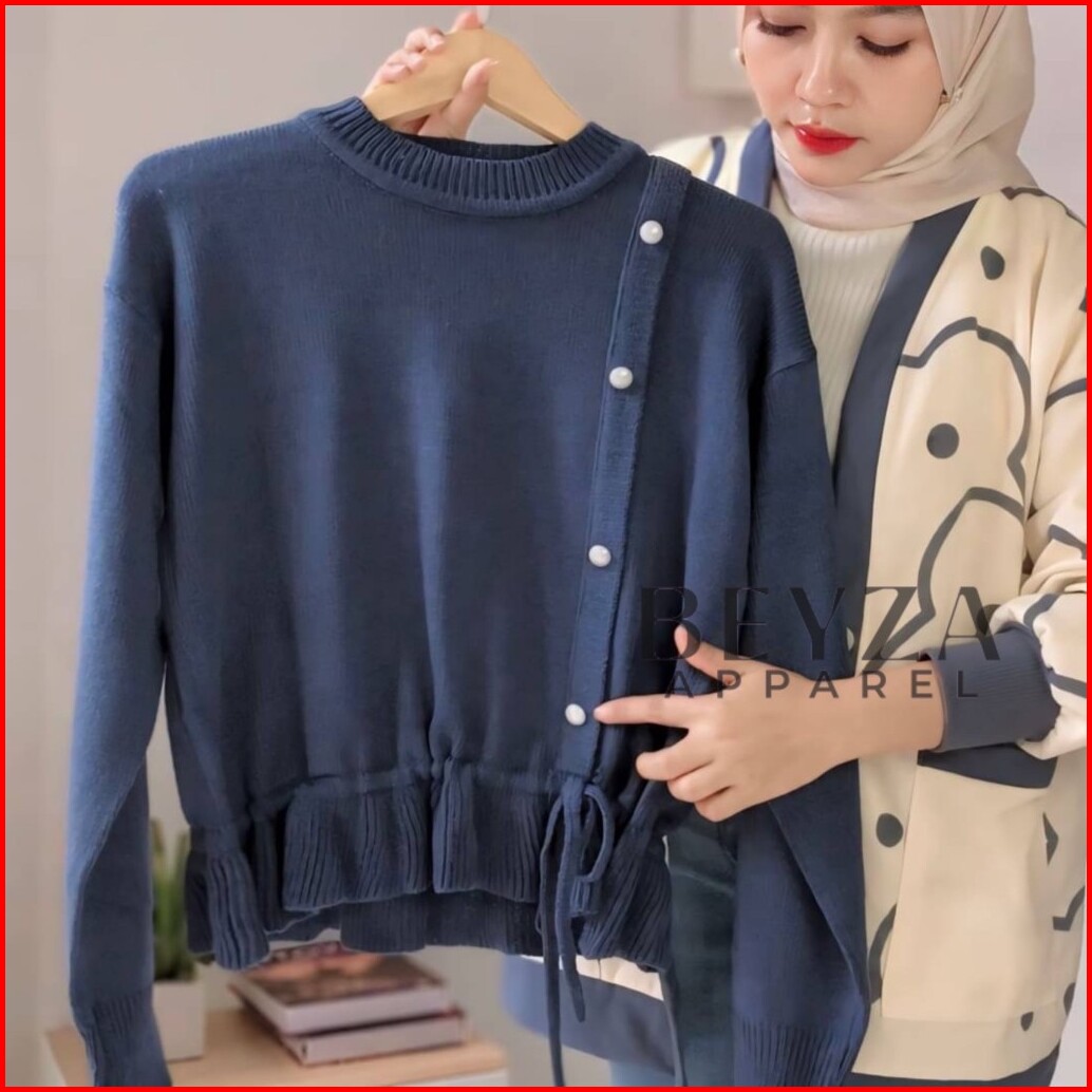 Beyza Apparel Jenny Blouse Atasan Rajut Korean Style Lengan Panjang Motif Polos