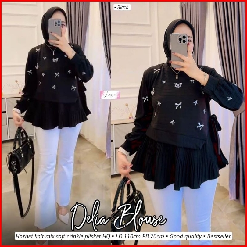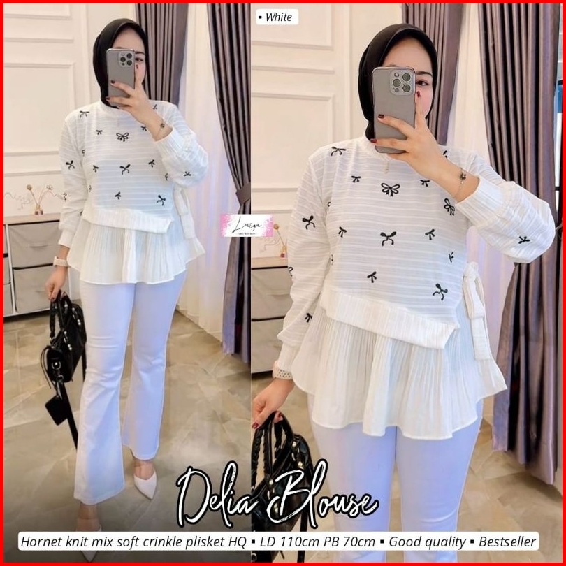 Atasan Blouse Knit Plisket Tebal Wanita Kekinian Halus. Blus Halus Adem. Frilla Blouse Top By Laiqa