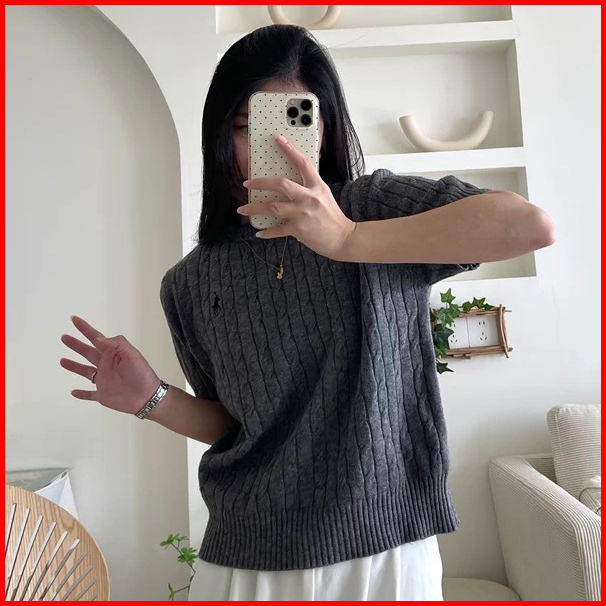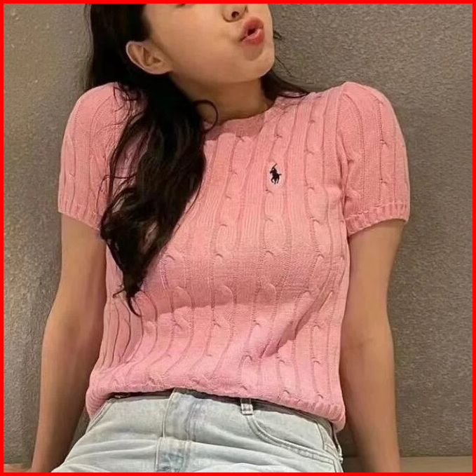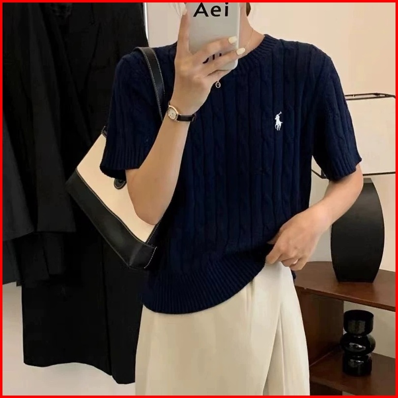 Avanue B03 Atasan Rajut Wanita Bermotif Polo Kaos Lengan Pendek Model Salur