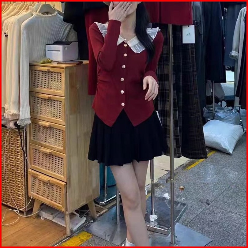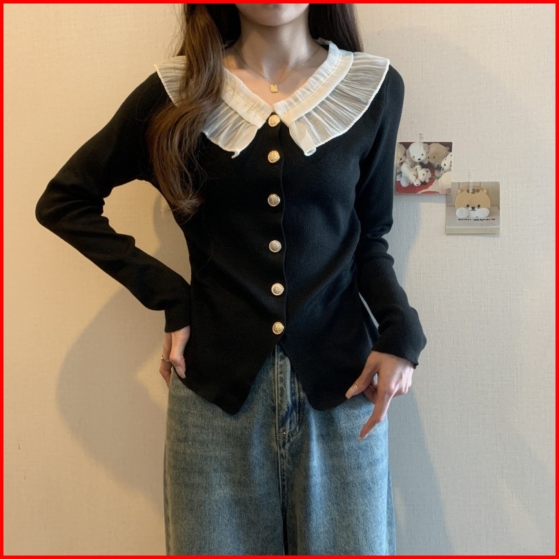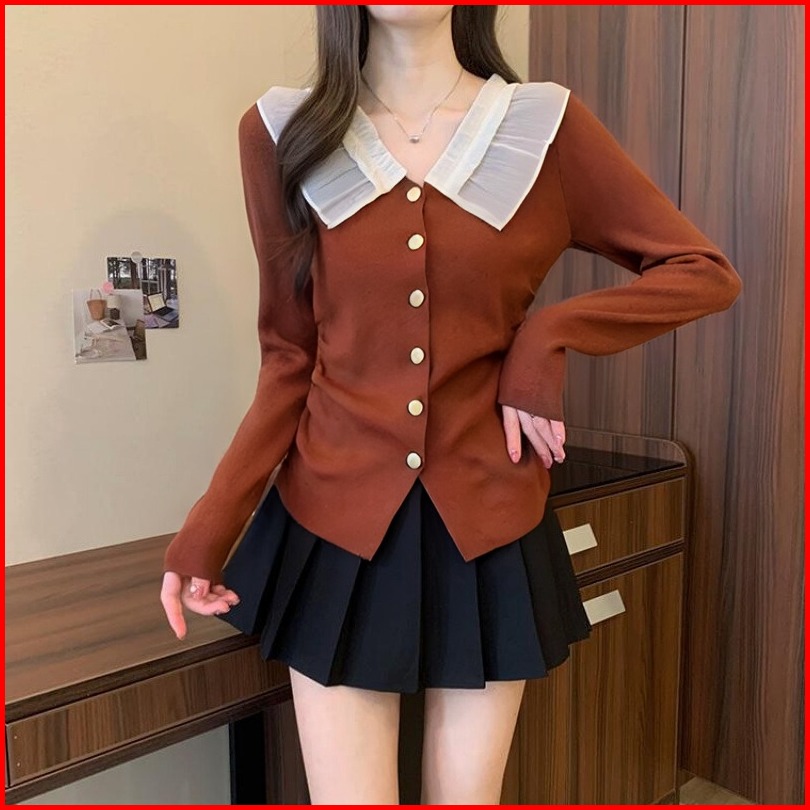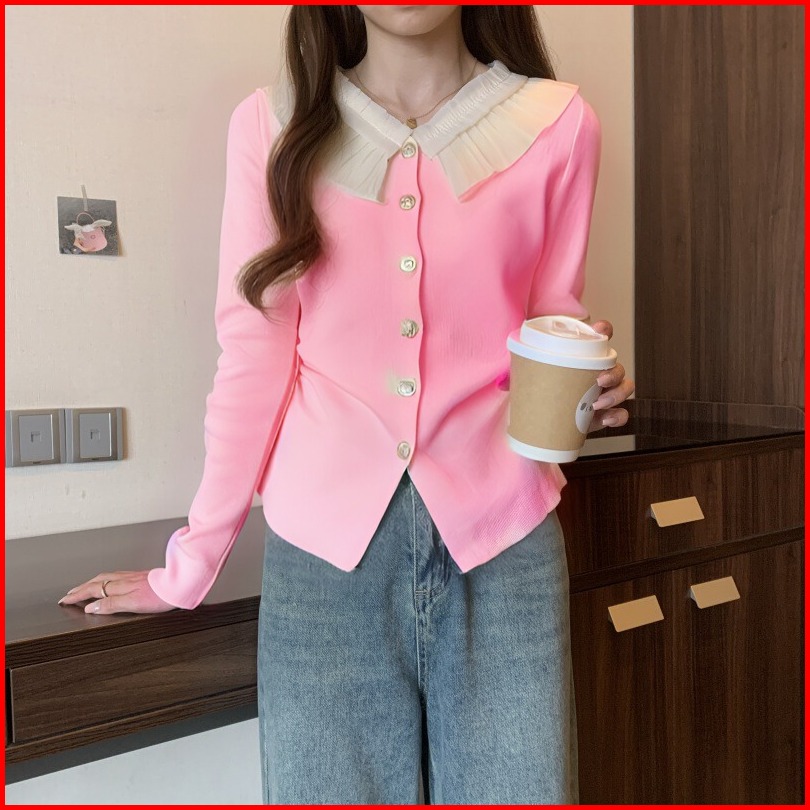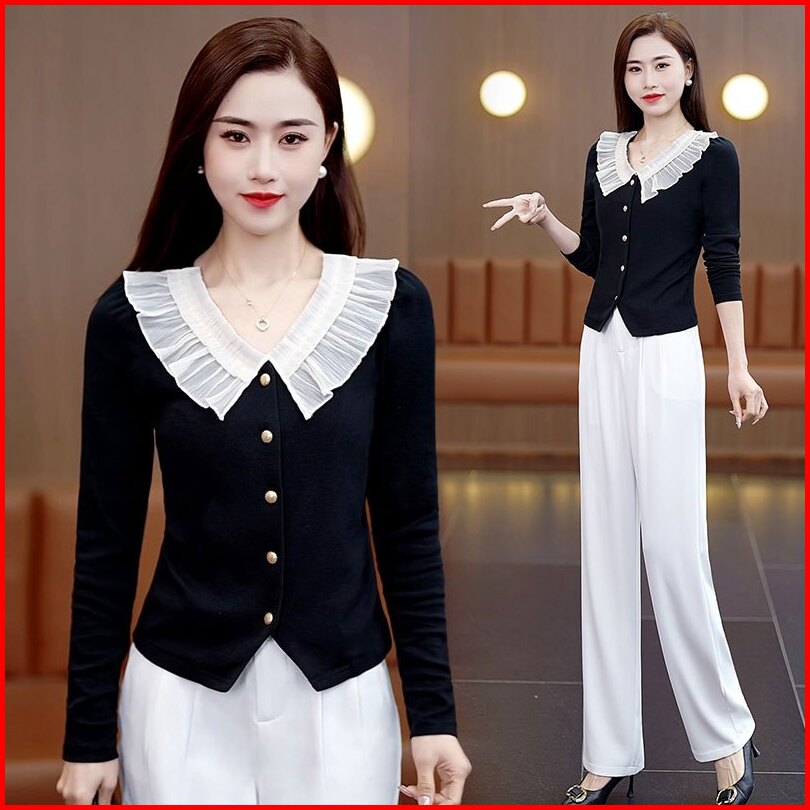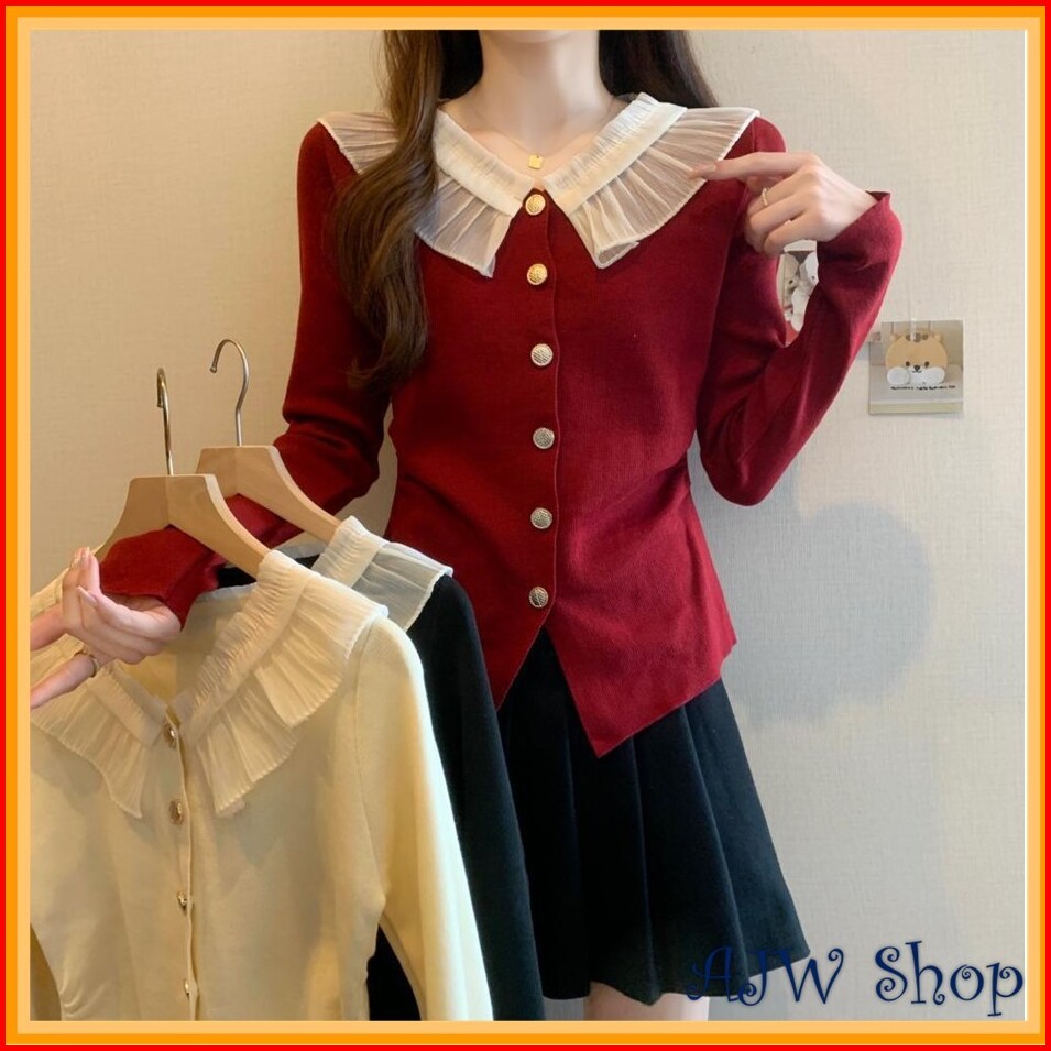 Ajw Atasan Wanita Lace Kerah Knit Premium Lengan Panjang Rbe Baju Wanita Rib Lace Kerah Rajut Premium Atasan Wanita Kore