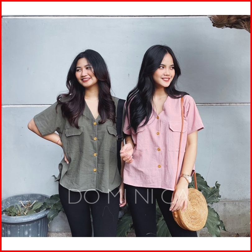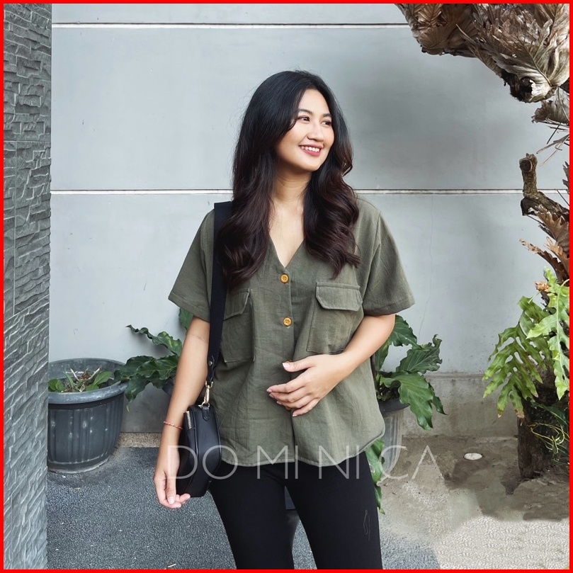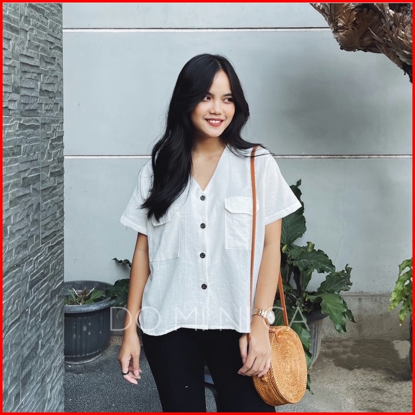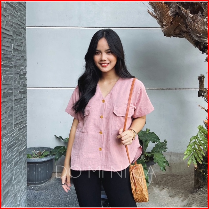 Sienna Short Sleeve Blouse Atasan Blus Lengan Pendek Linen