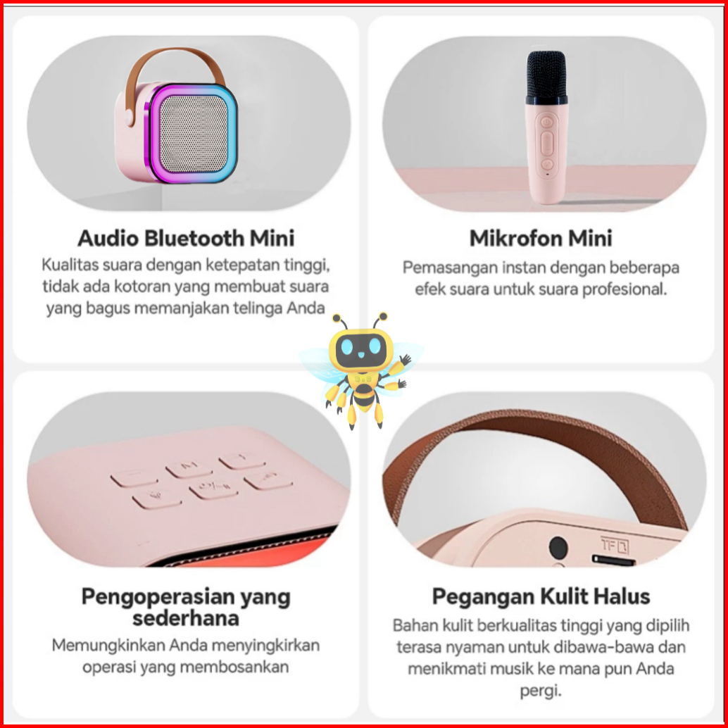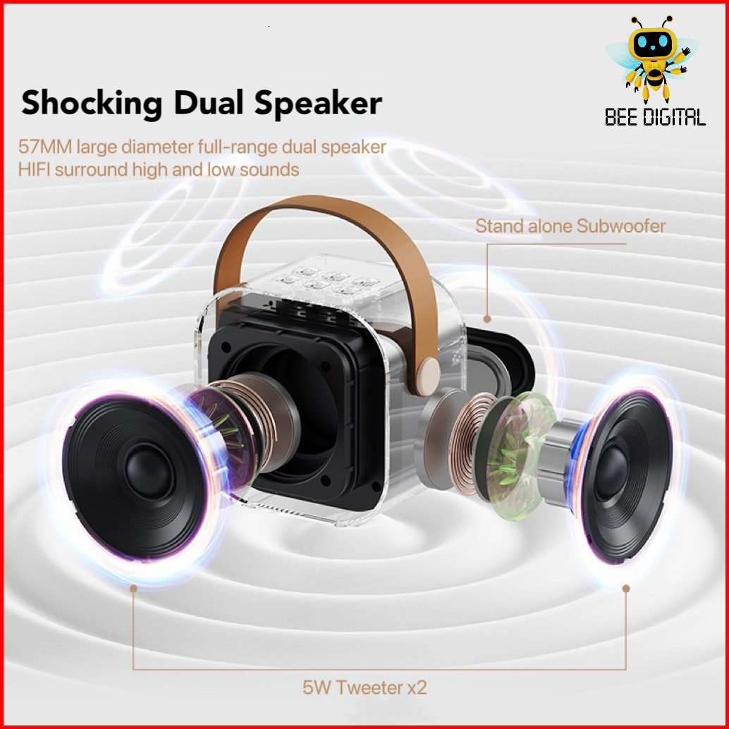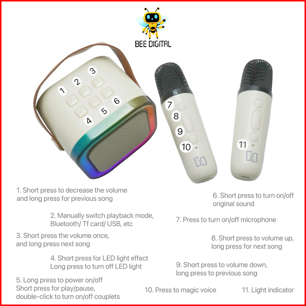 Beedigital Speaker Bluetooth Portable With Mic Karaoke Led Lightweight Mp3 Player Full Bass Voice Changer Karaoke Wirele