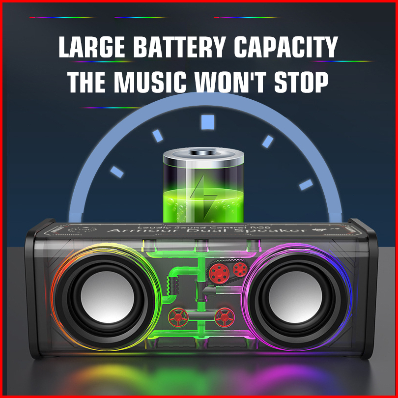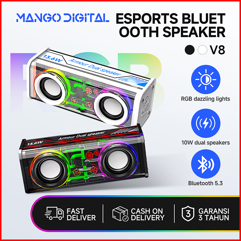 Ready Stockspeaker Bluetooth Cyberpunk V8 Transparan Double Subwoofer Music Speaker Rgb Led 13.6w 7 Color Light Speaker