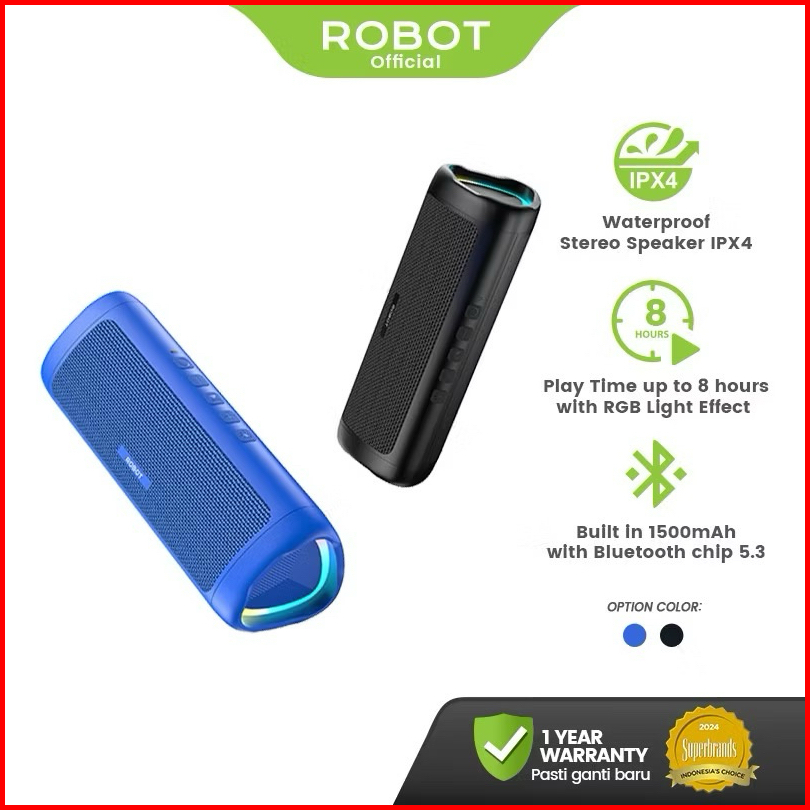 Robot Bluetooth Speaker 5.3 Rb525 Double Bass 10w With Rgb Light Waterproof Ipx4 1500mah Portable - Garansi 1 Tahun