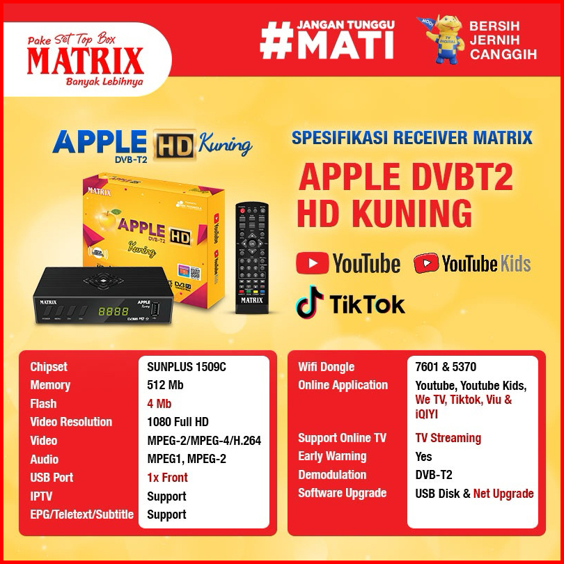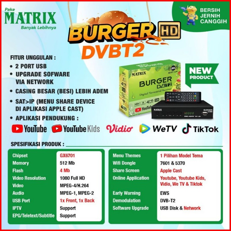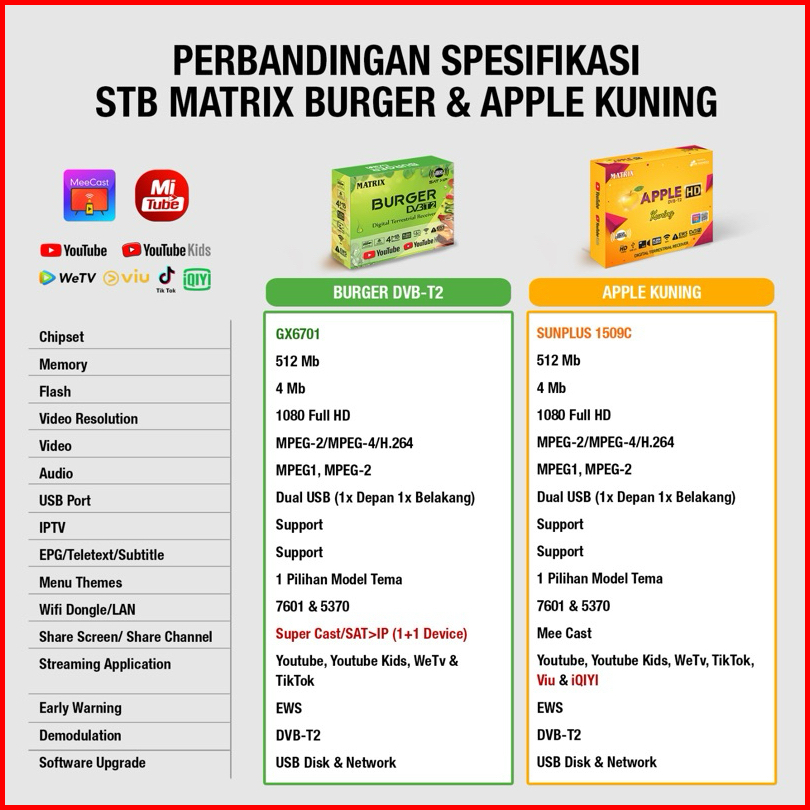 STB Burger + RCA, STB Burger + HDMI, STB Burger + Dongle, STB + HDMI + Dongle, STB Matrix Merah, STB Merah + HDMI, STB Apple Kuning, Apple Kuning + HDMI