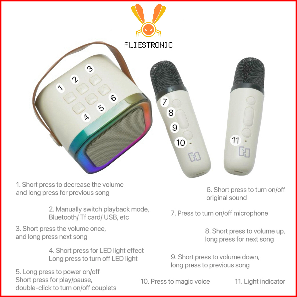 Fliestronic Speaker Led Lightweight Bluetooth Portable Mic Karaoke Mp3 Player
