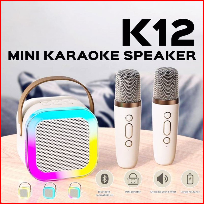 K12 2 Mic 1 Set Speaker Bluetooth Portable Speaker Karoke With Microphone 3d Stereo Amplifier Party Wireless Mini Speake