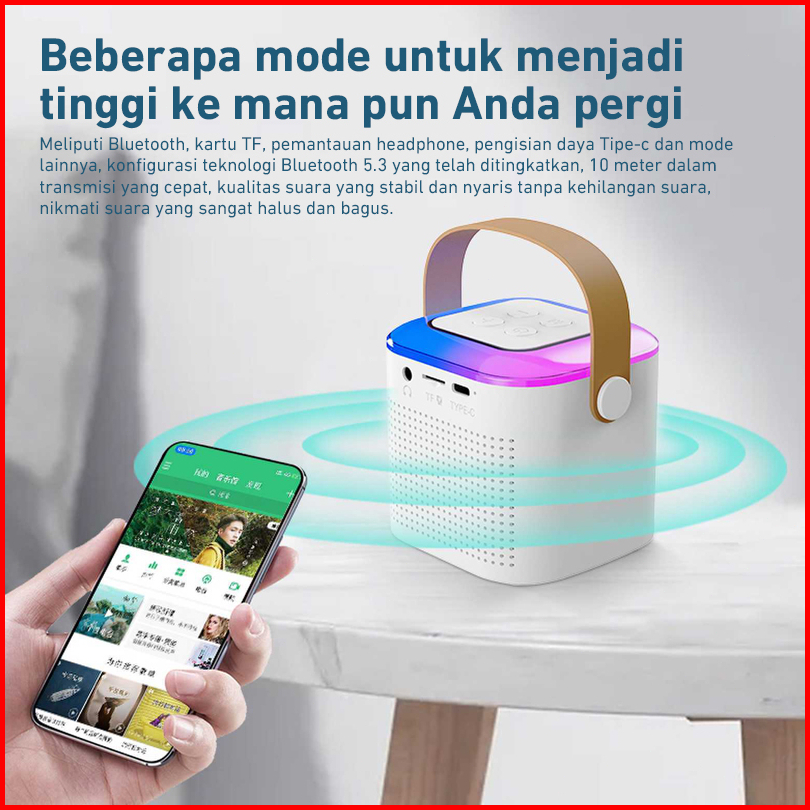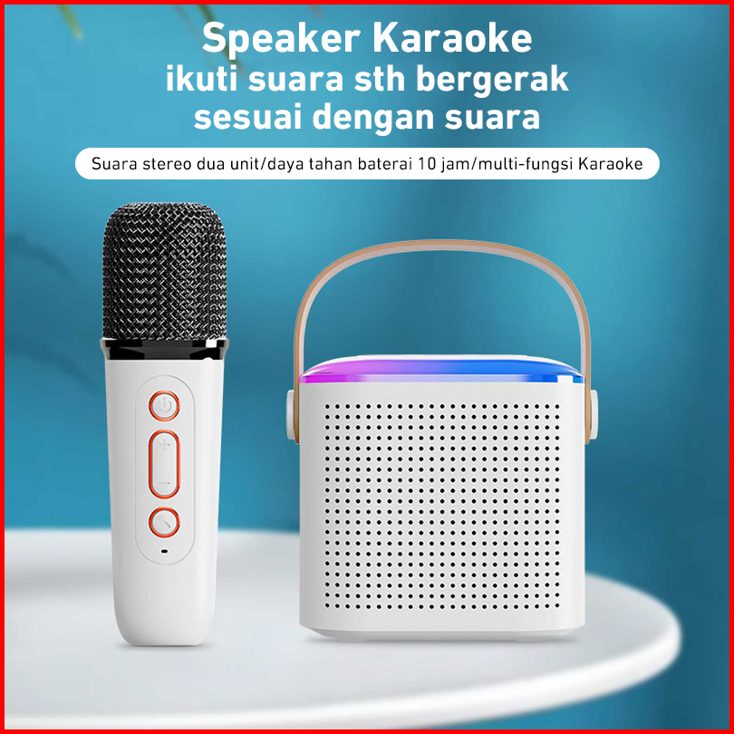 Speaker Bluetooth Karaoke 2mic 1 Set Karaoke Speaker Ktv Cute Wireless Lucu Portabel Luar Ruangan Speaker Nirkabel Mic B