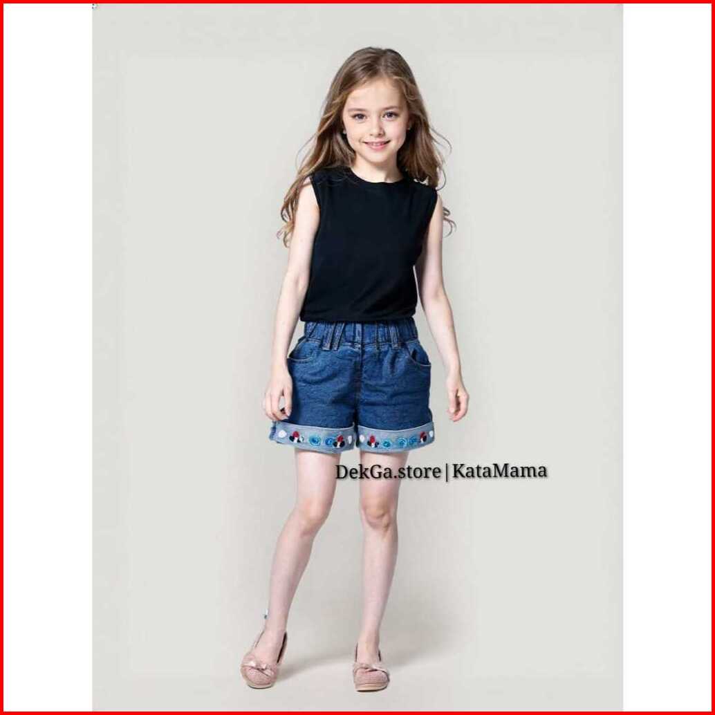 Dekga Hotpant Jeans Anak Perempuan Usia 2-12tahun Bawahan Celana Pendek Jeans Denim Harian Anak Motif Bordir