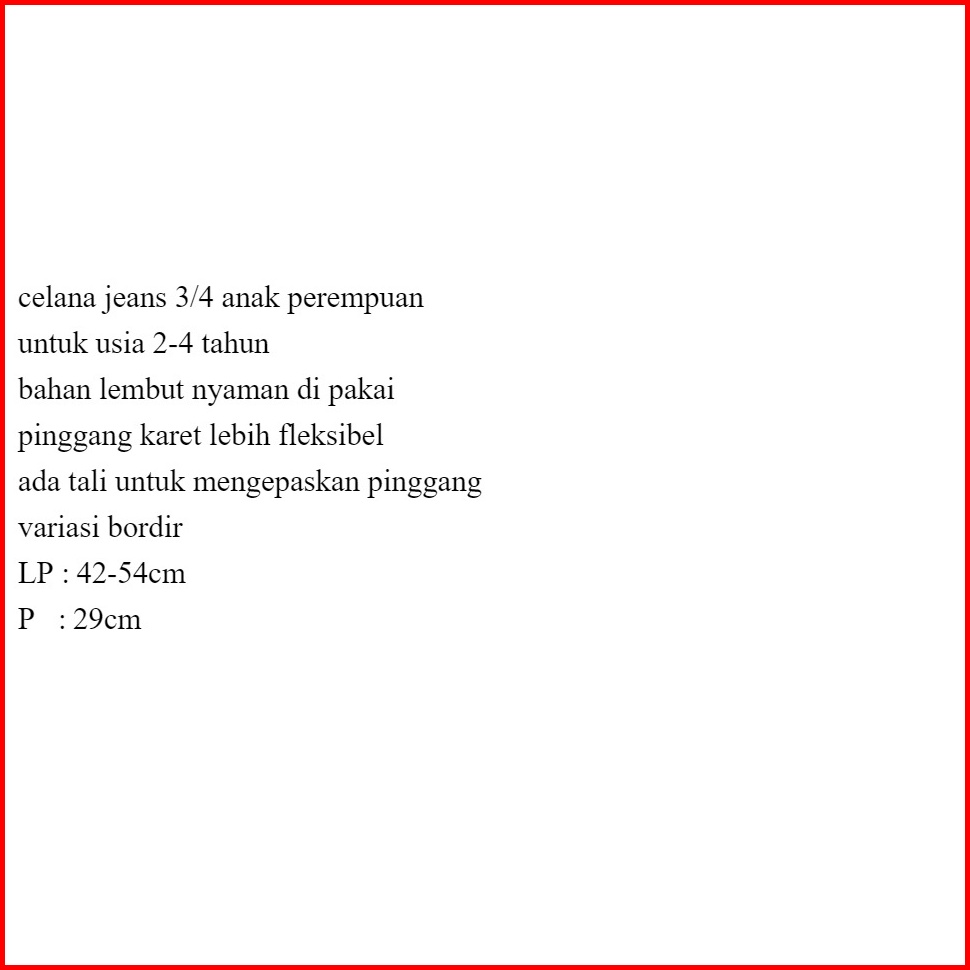 Celana Jeans 3 4 Anak 2-4 Tahun Variasi Bordir Celana Pendek Jeans Anak Perempuan Hotpants Anak Perempuan