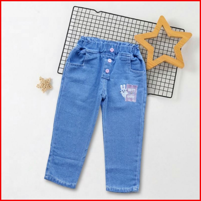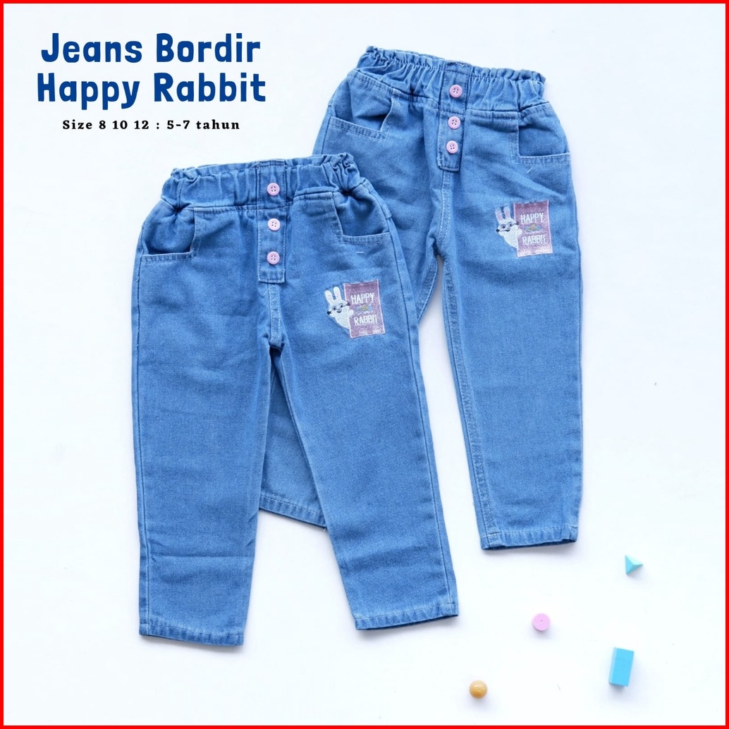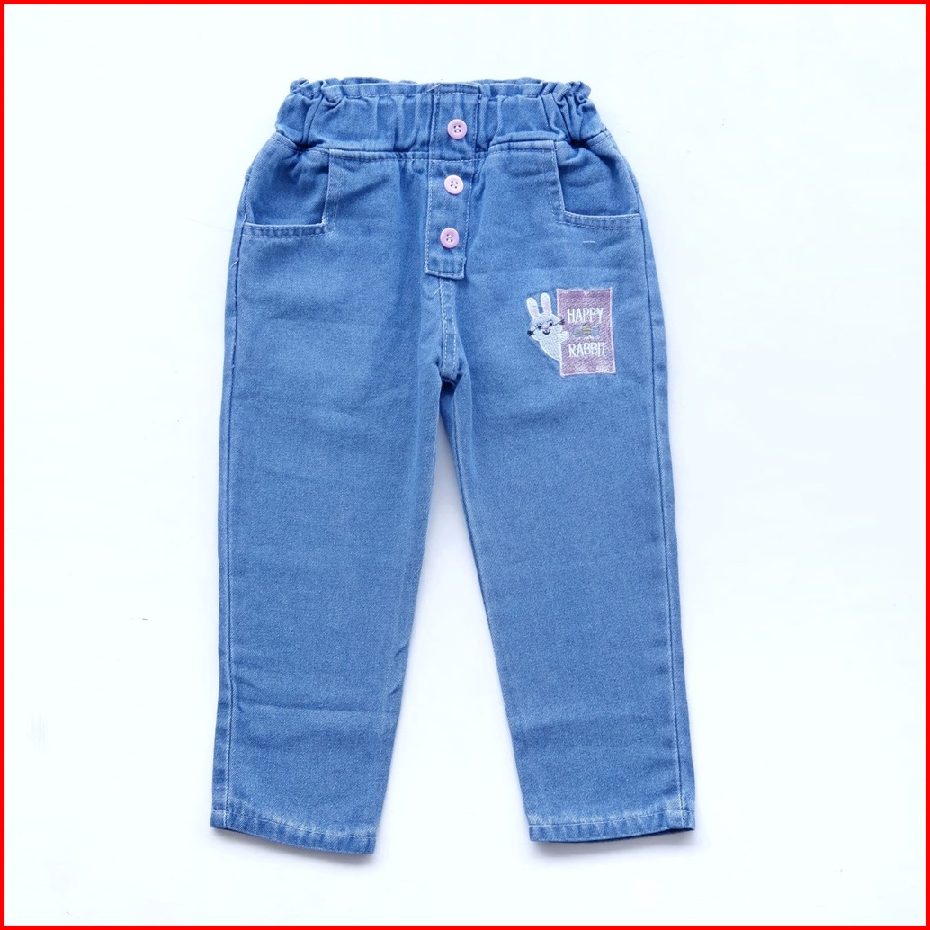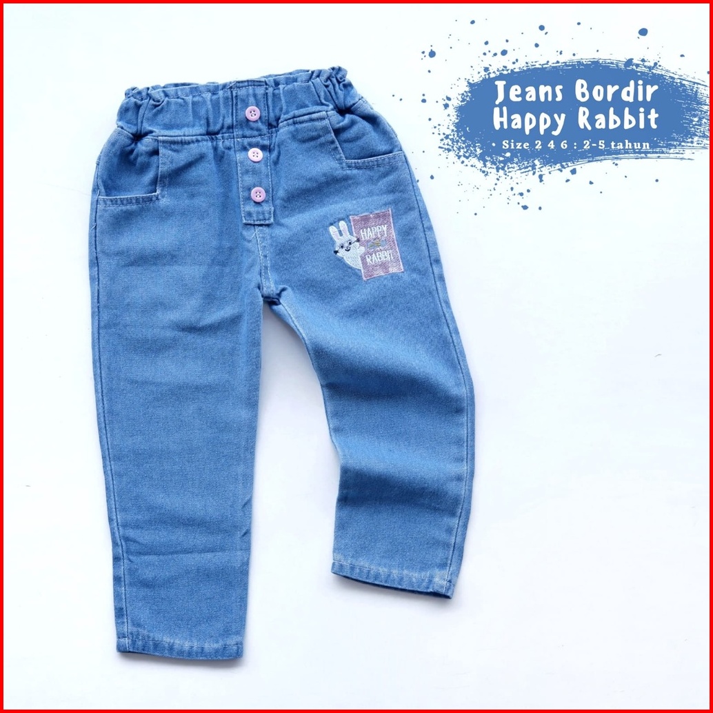 Celana Jeans Bordir Rabbit Jeans Anak Cewek Perempuan 2-7 Tahun