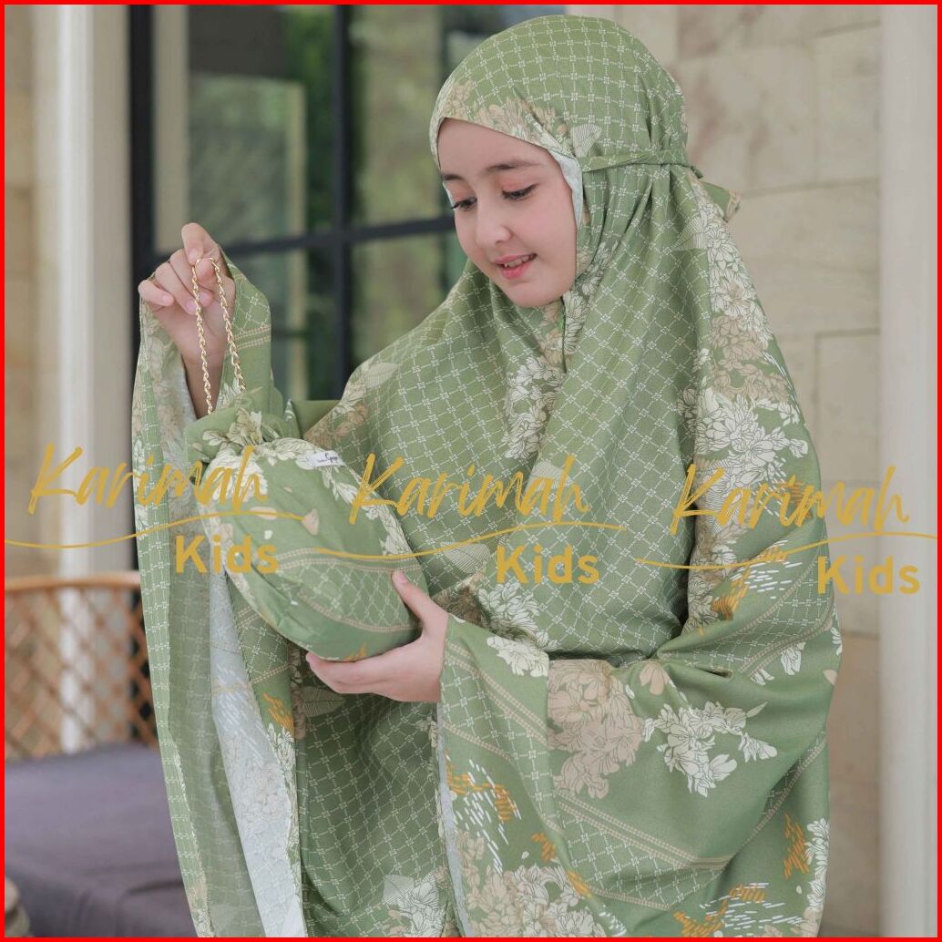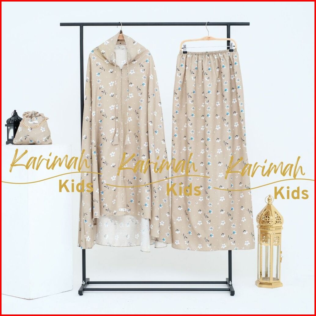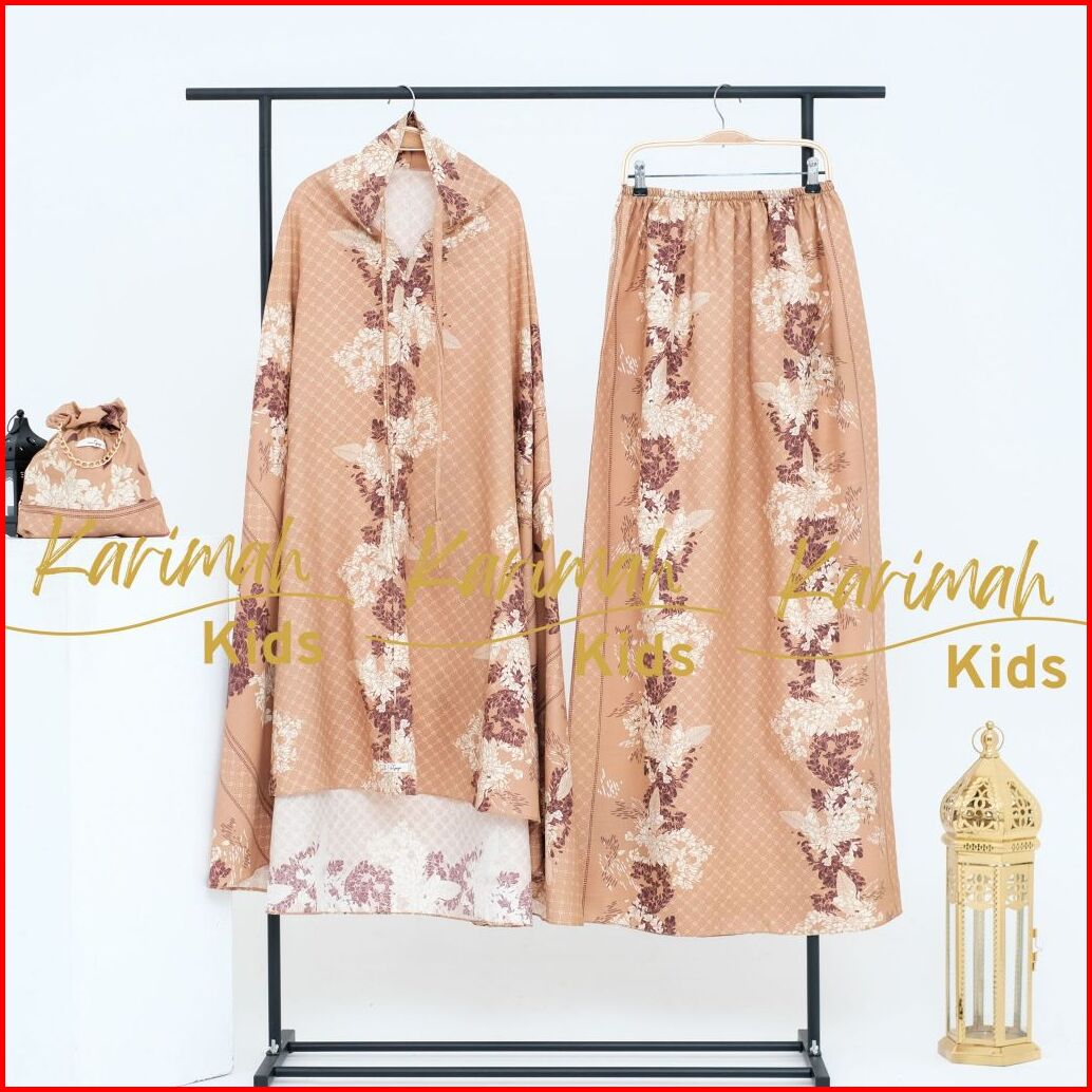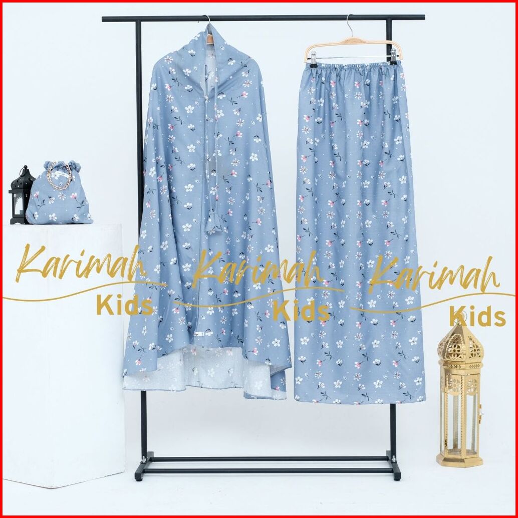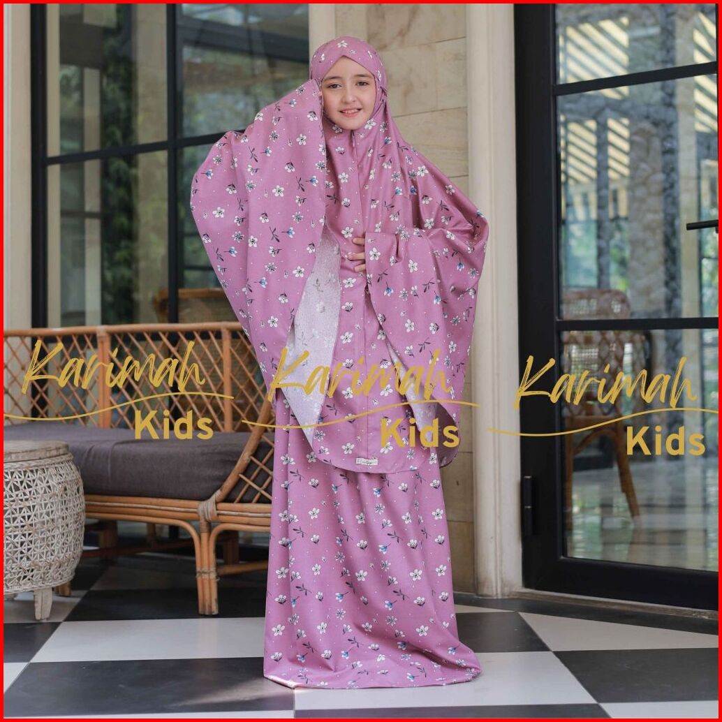 Karimahkids Mukena Anak Katun Micro Motif Bunga Resleting 2in1 Lucu Tanggung 9-14 Tahun Amandaseries