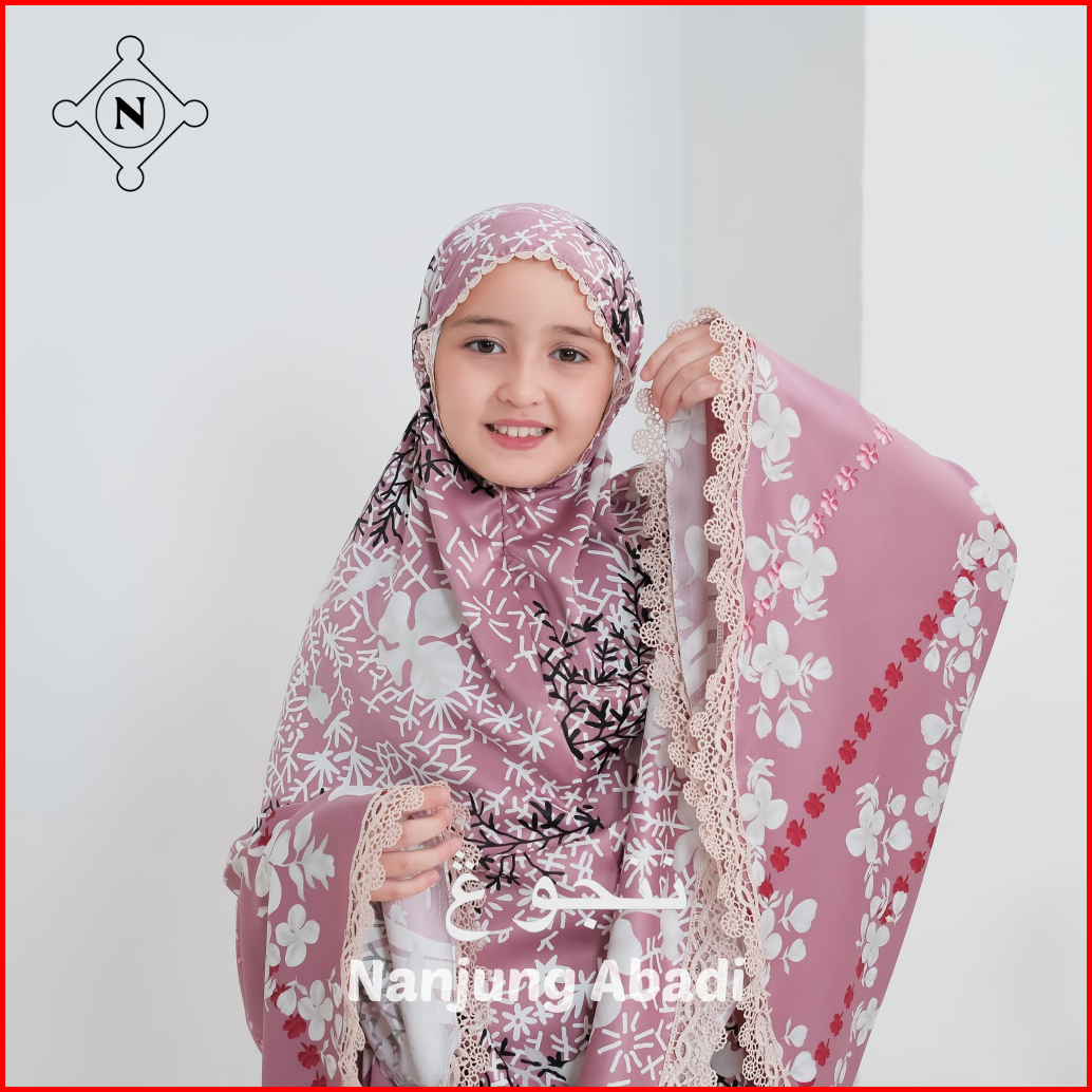 Nanjung Abadi - Mukena Anak Perempuan 3-12 Thn Dior Silk Premium Motif Bunga Lucu Azwa Series