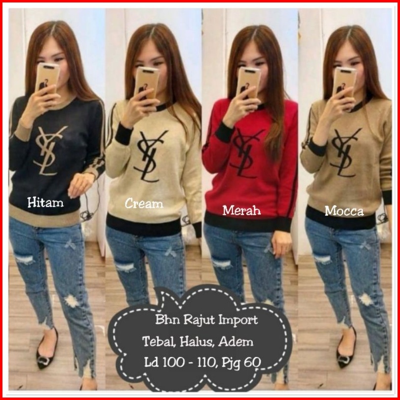 Atasan Rajut Import Blouse Wanita Premium Kaos Rajut Lengan Panjang