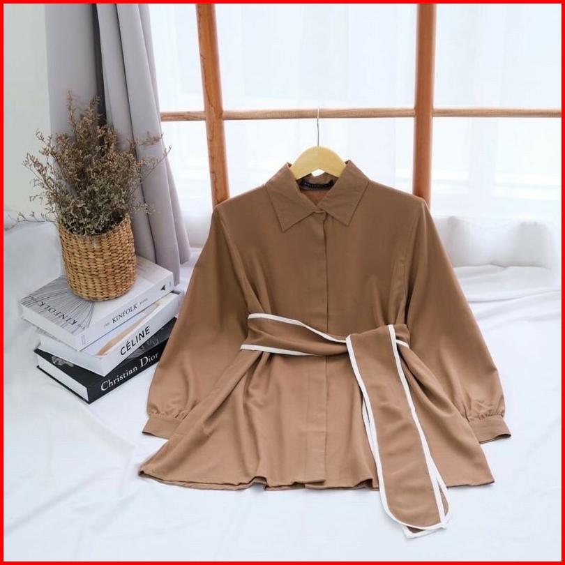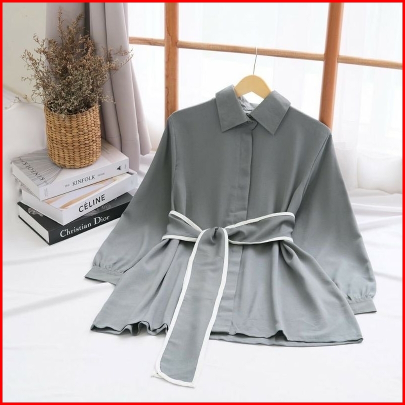 Arini Atasan Wanita - Kemeja Korean Style - Kemeja Kerja - Blouse Kemeja - Kemeja Kekinian - Atasan Terbaru - Kemeja Wan