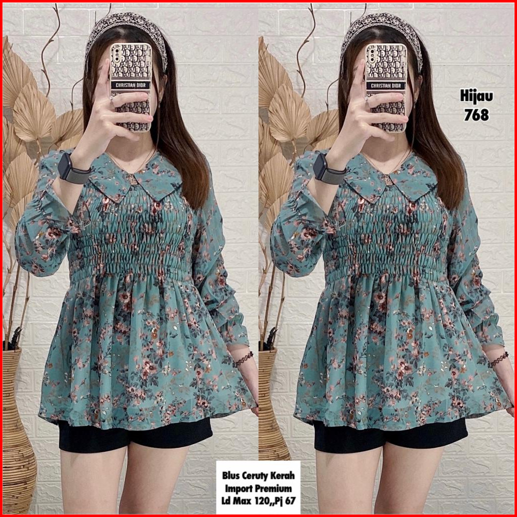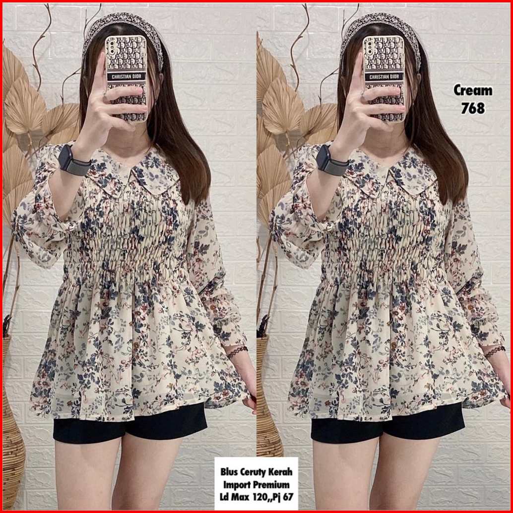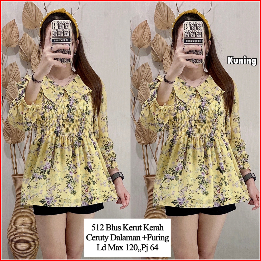 Blus Wanita Kerut Kerah Ceruty Import Premium Blus Wanita Import Atasan Wanita Lengan Panjang Blus Wanita Kerut Best Sel