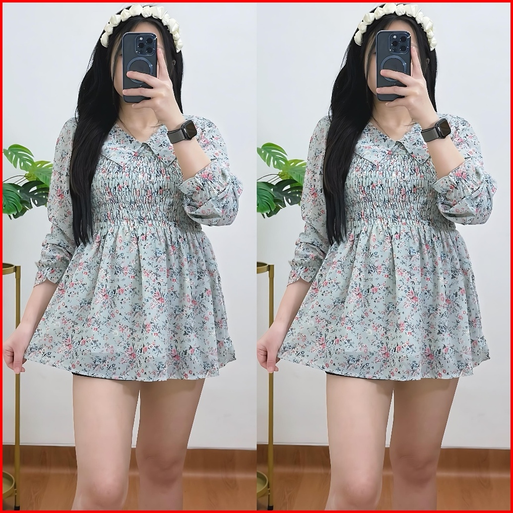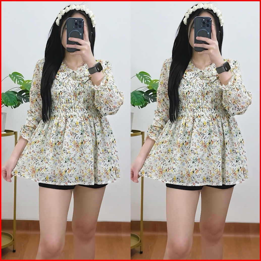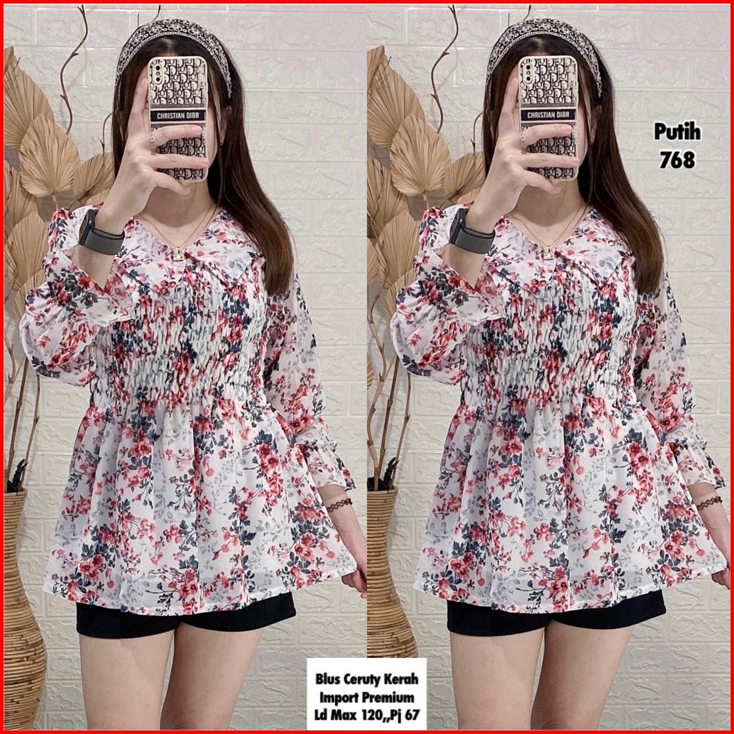 Blus Wanita Kerut Kerah Ceruty Import Premium Blus Wanita Import Atasan Wanita Lengan Panjang Blus Wanita Kerut Best Sel