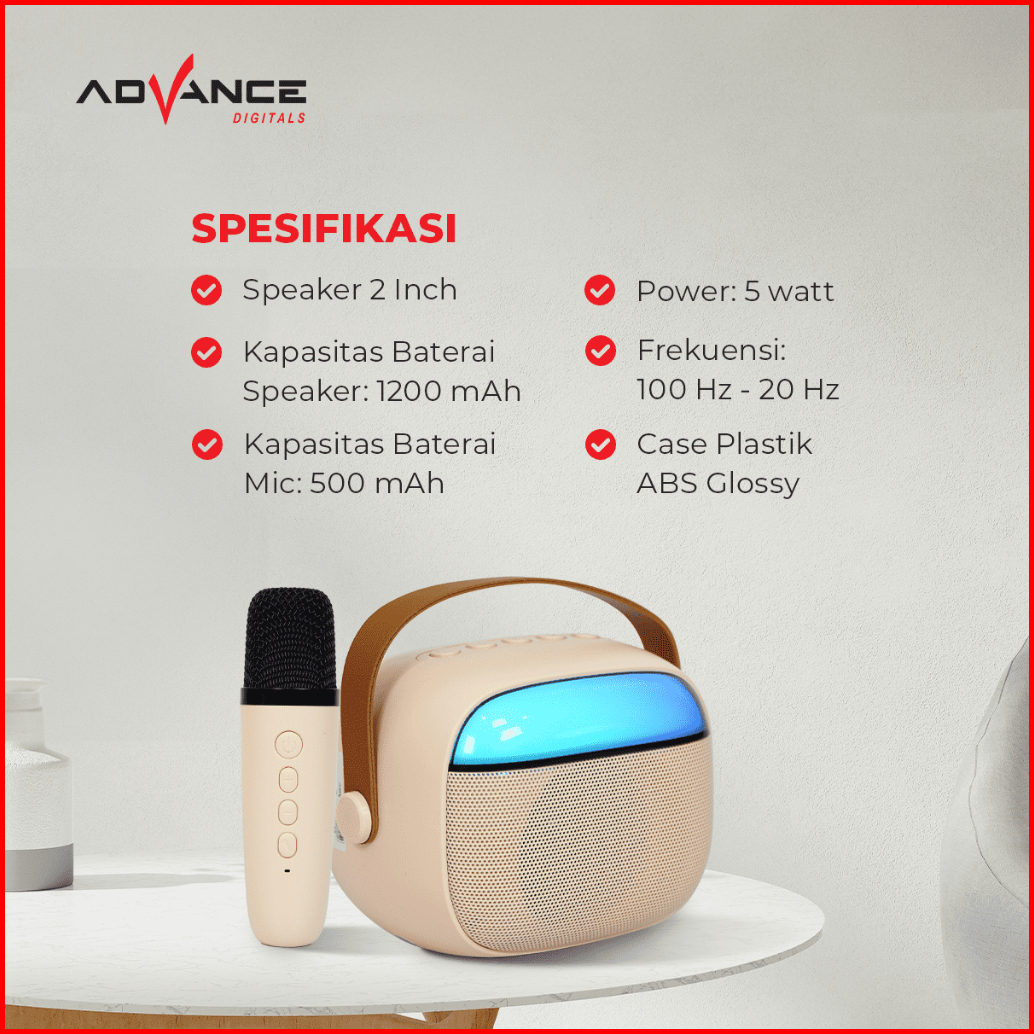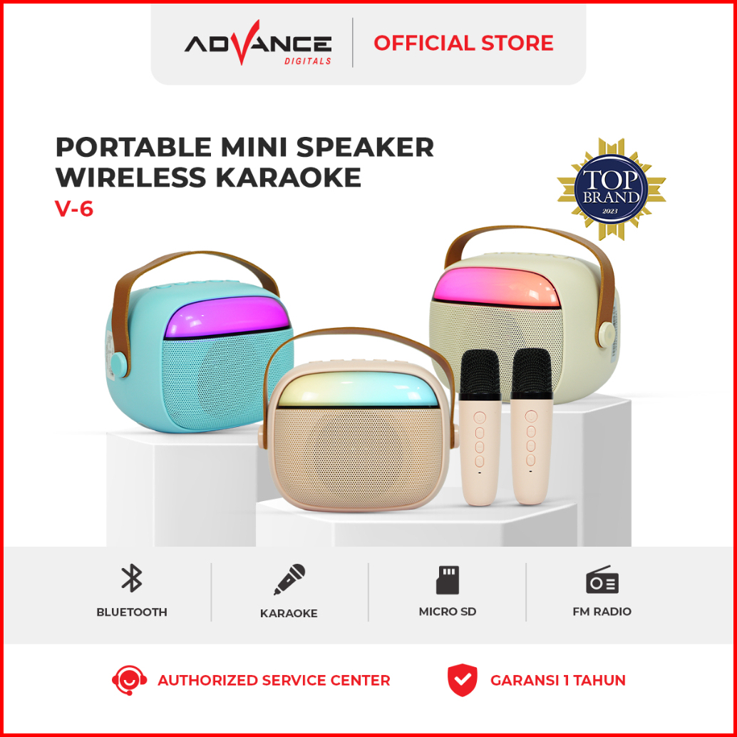Advance V6 Speaker Mini Portable Bluetooth Dengan 2 Microphone Wireless Garansi Resmi 1 Tahun